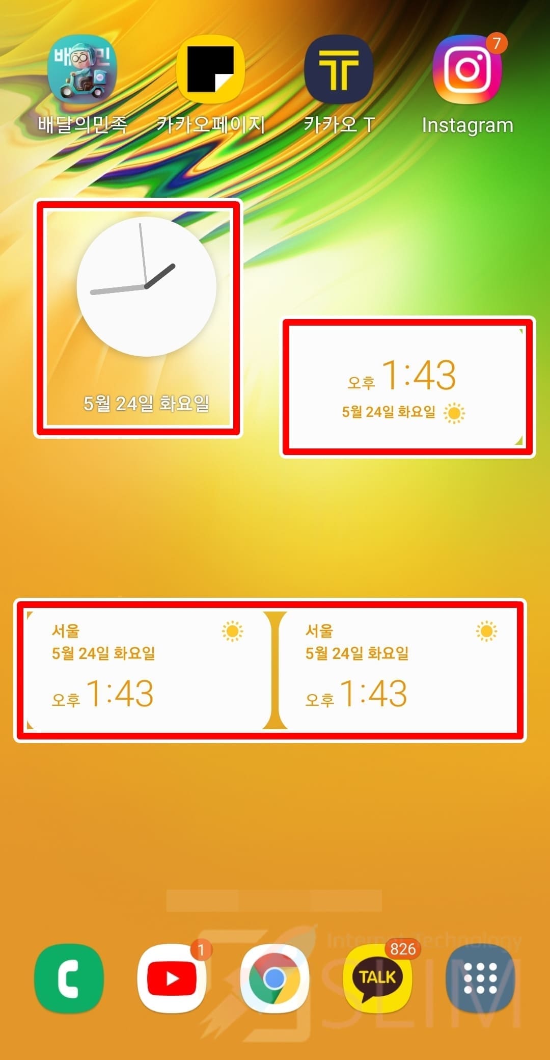 각 시계 위젯을 홈화면에 만들었을 때의 모습이니 참고하셔서 선택하시면 되겠습니다.
