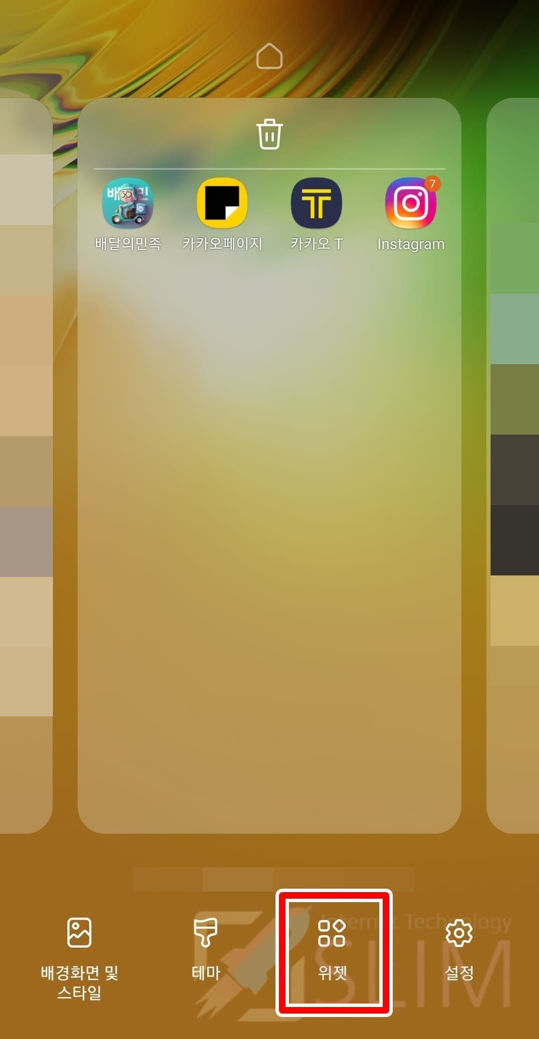 2. 열려진 설정창에서 위젯을 클릭합니다.