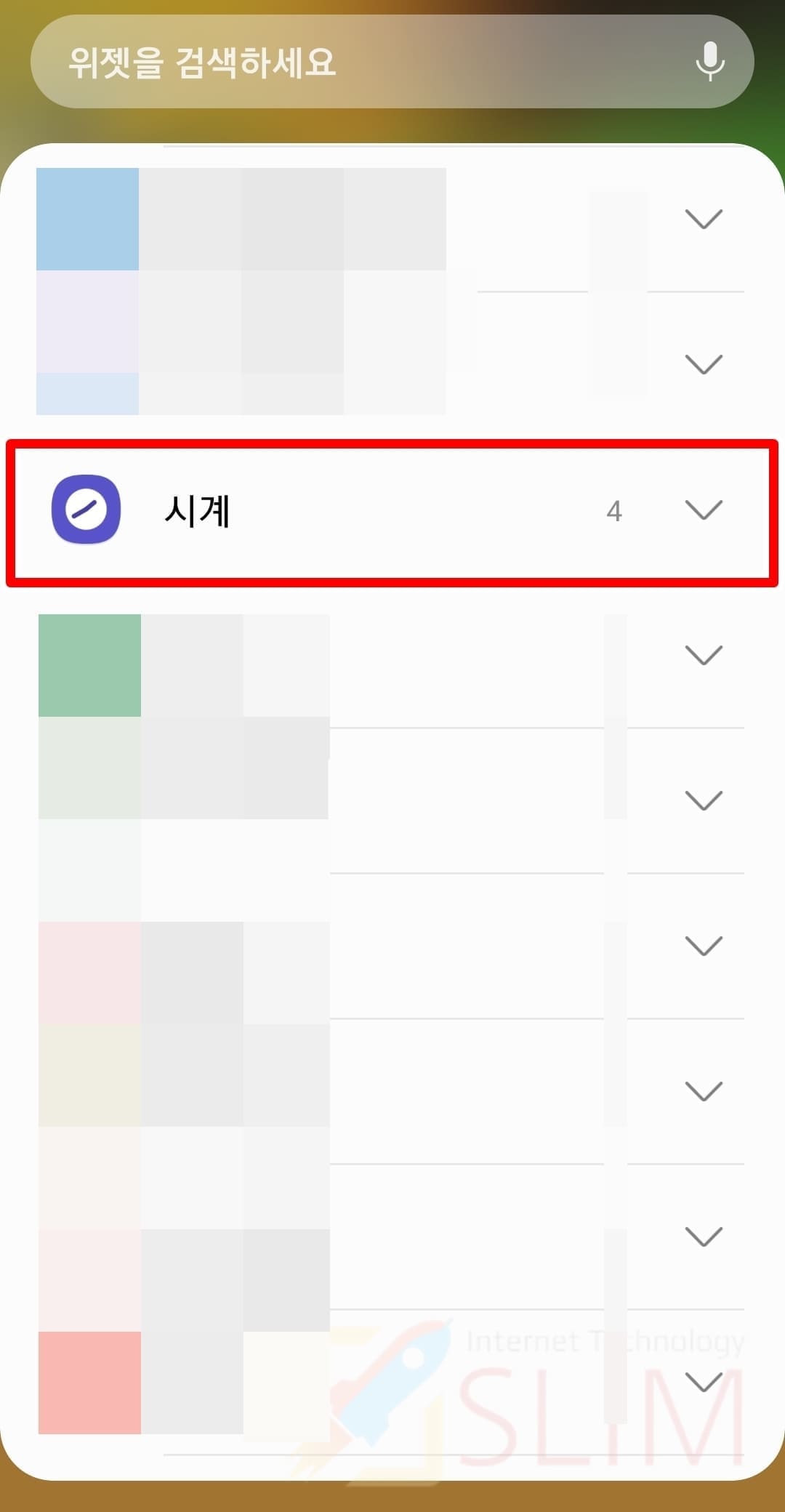 3. 추가 가능한 위젯 목록에서 시계를 누릅니다.
