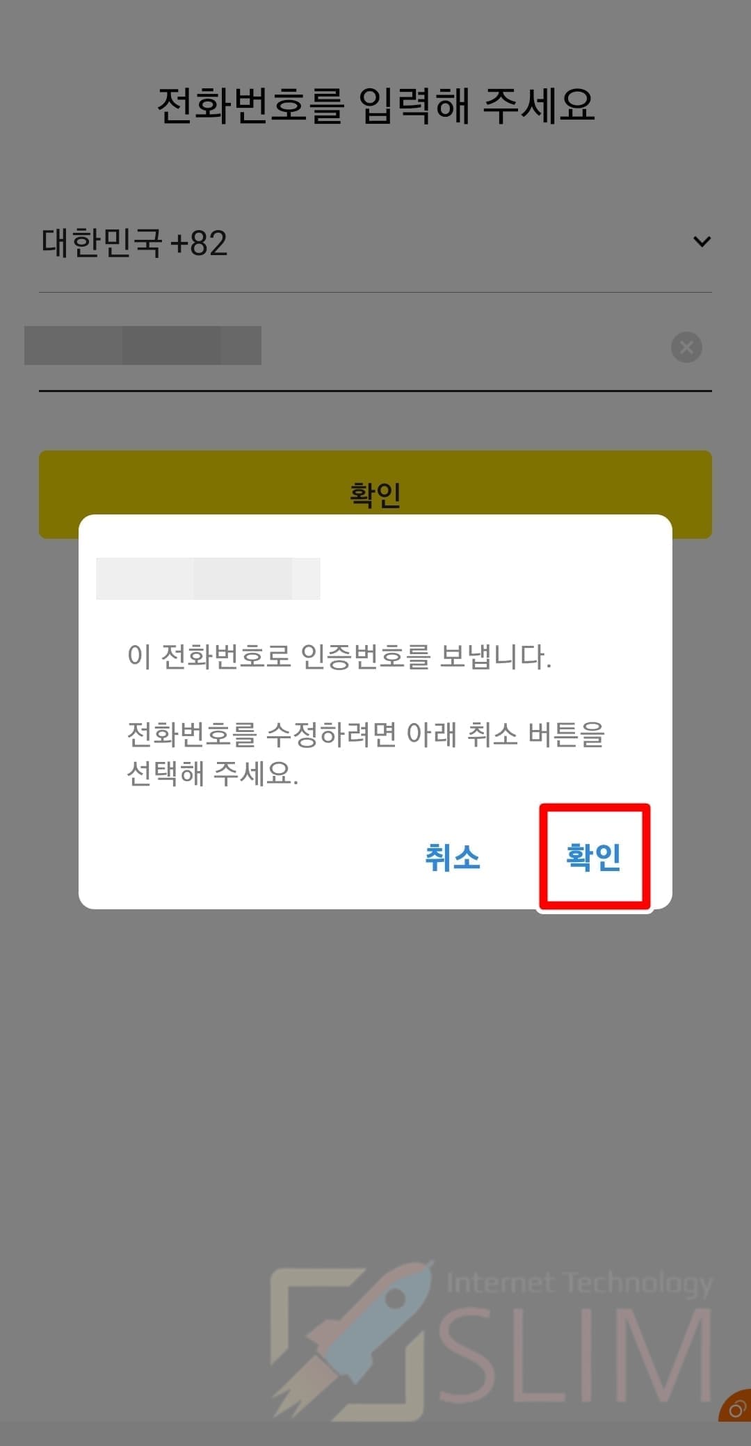 14. 확인을 누르고 문자 인증번호를 입력합니다.
