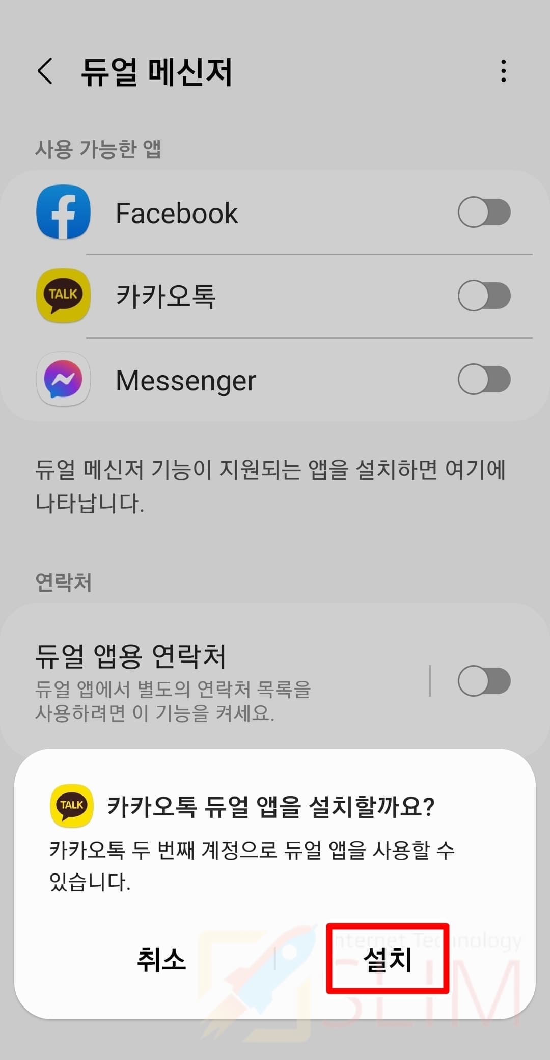 5. 듀얼 앱 설치 안내에 설치를 클릭합니다.