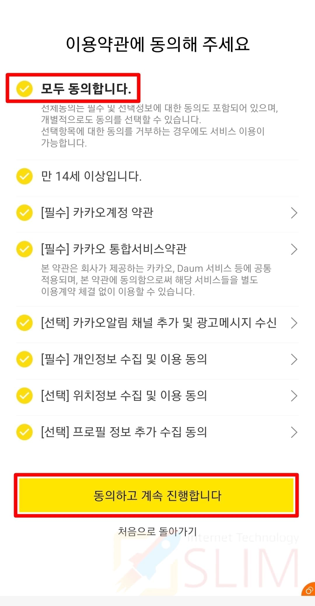 11. 모두 동의하고 계속 진행합니다.