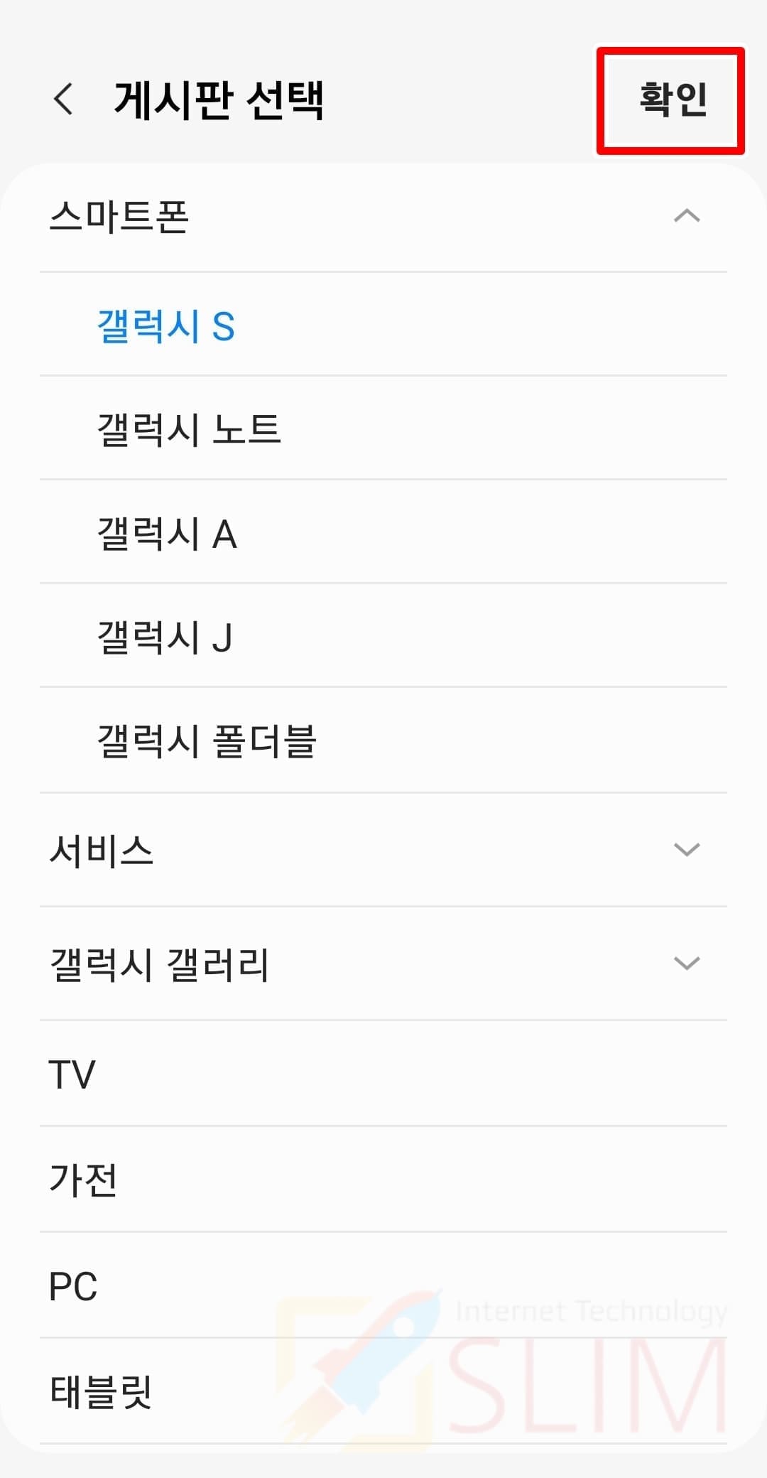 8. 글을 올리고 싶은 게시판을 선택한 후 확인을 누릅니다.