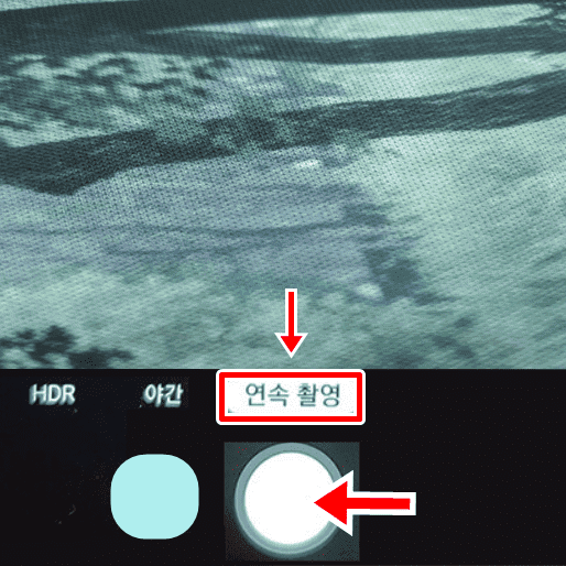갤럭시 모델이 출시된지 조금 되었거나, 최신 업데이트를 하지 않은 경우 및 특정 모델들의 경우에는 촬영 버튼을 길게 누르기만하면 연속촬영됩니다.