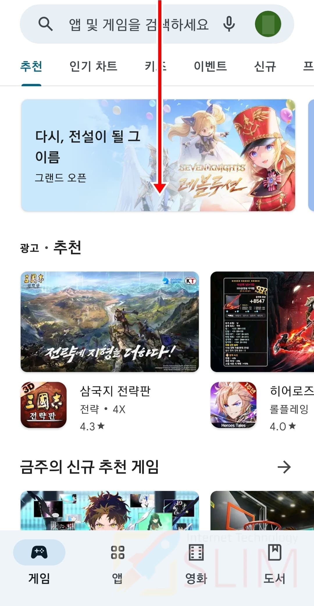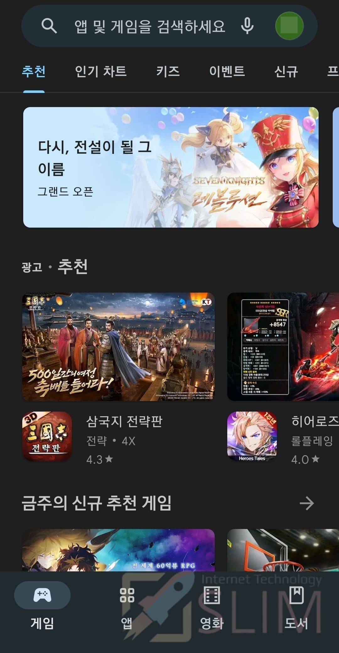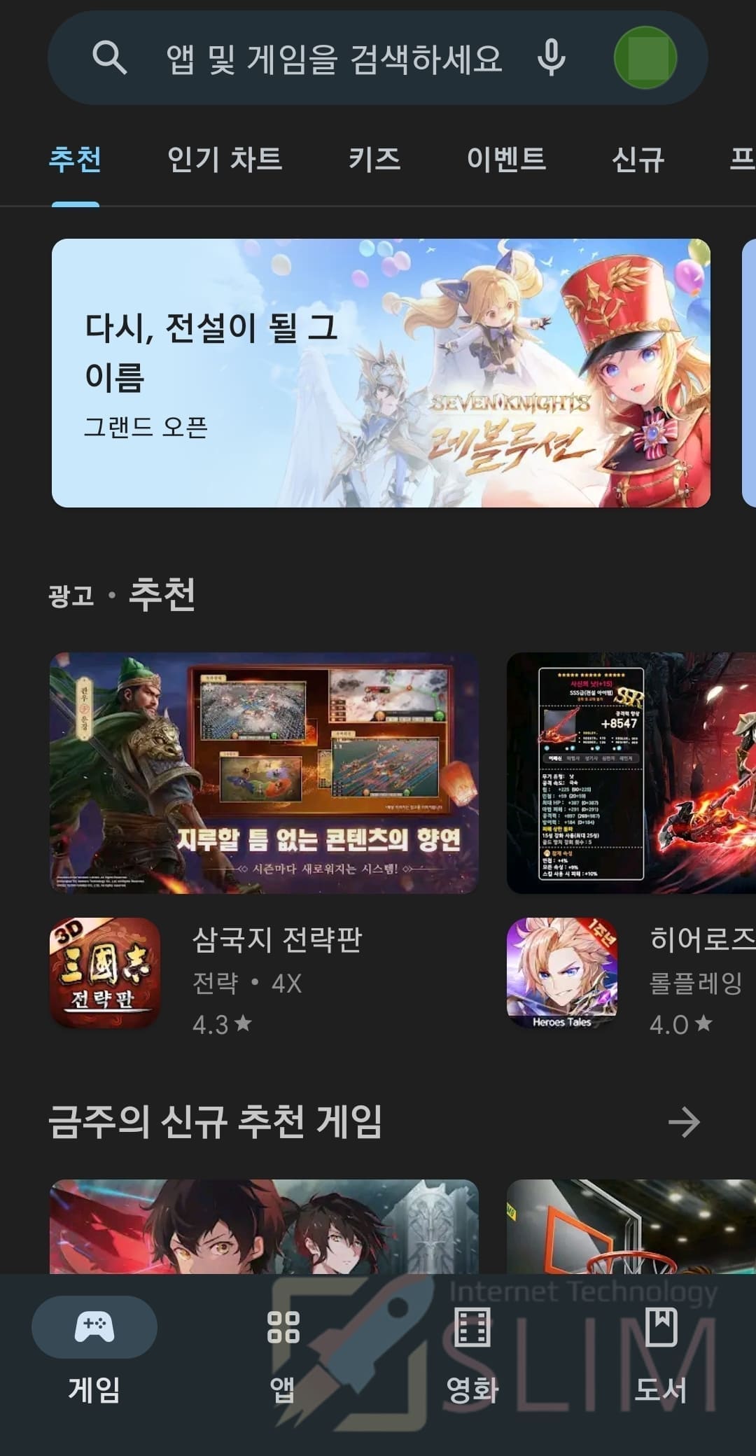 4. 구글 플레이 스토어를 실행하면 다크모드가 적용된 것을 확인할 수 있습니다.