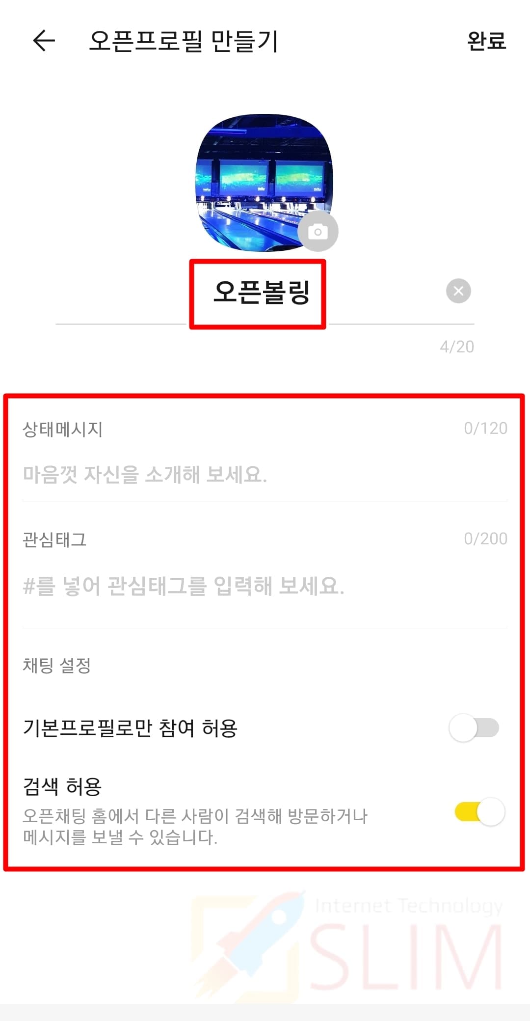 7. 오픈프로필 이름 및 정보를 기입합니다.