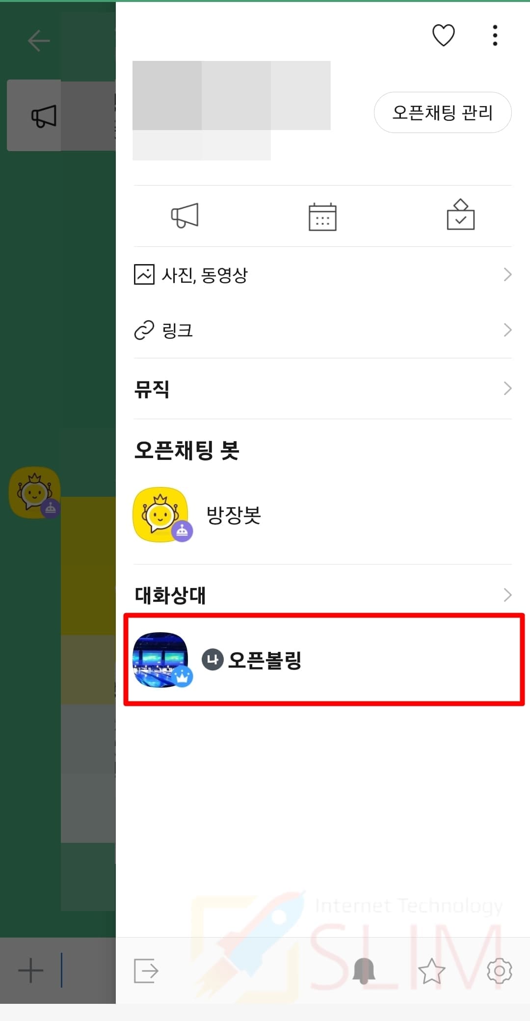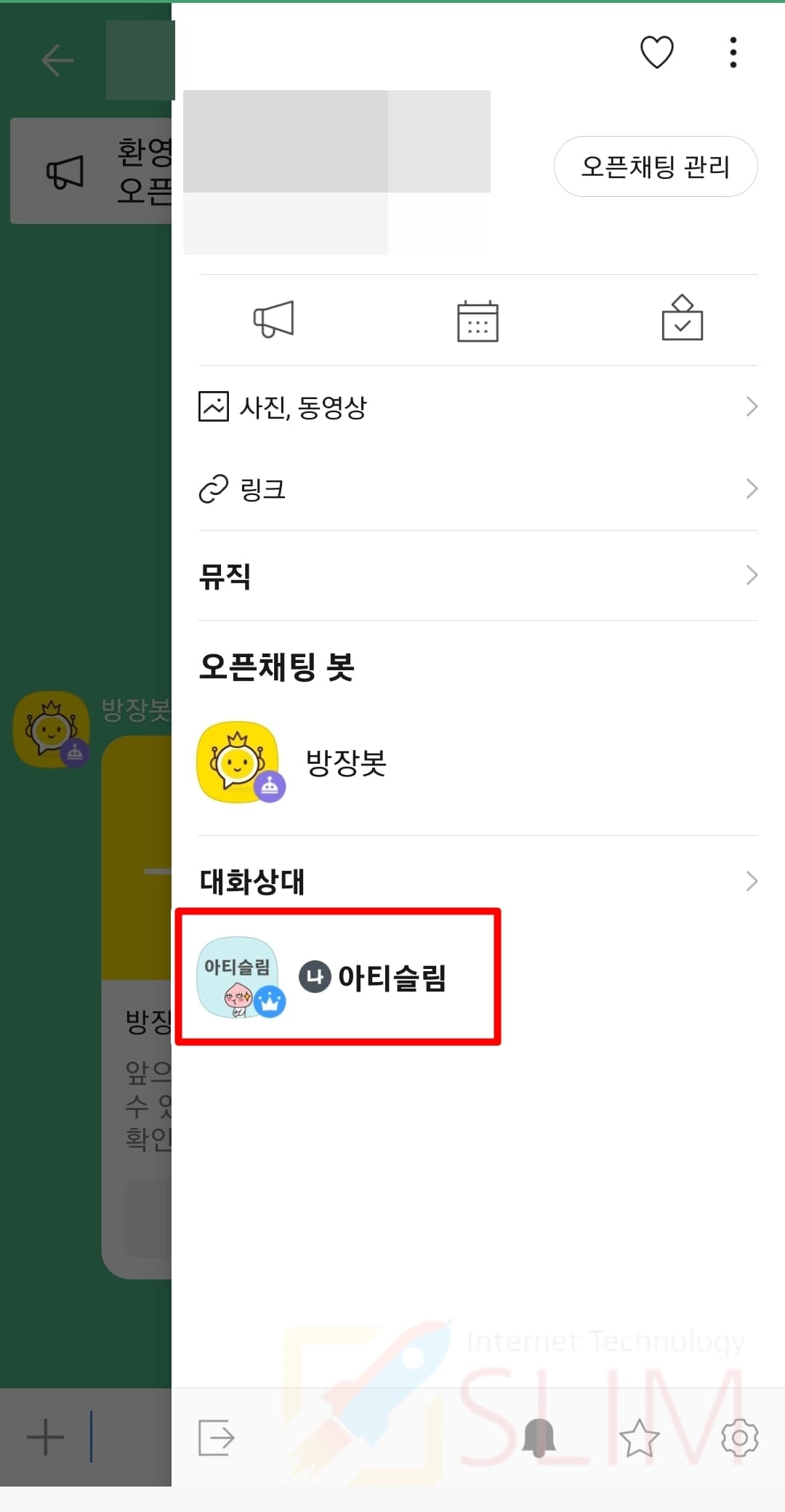 1. 오픈채팅방 톡서랍 버튼을 클릭합니다.