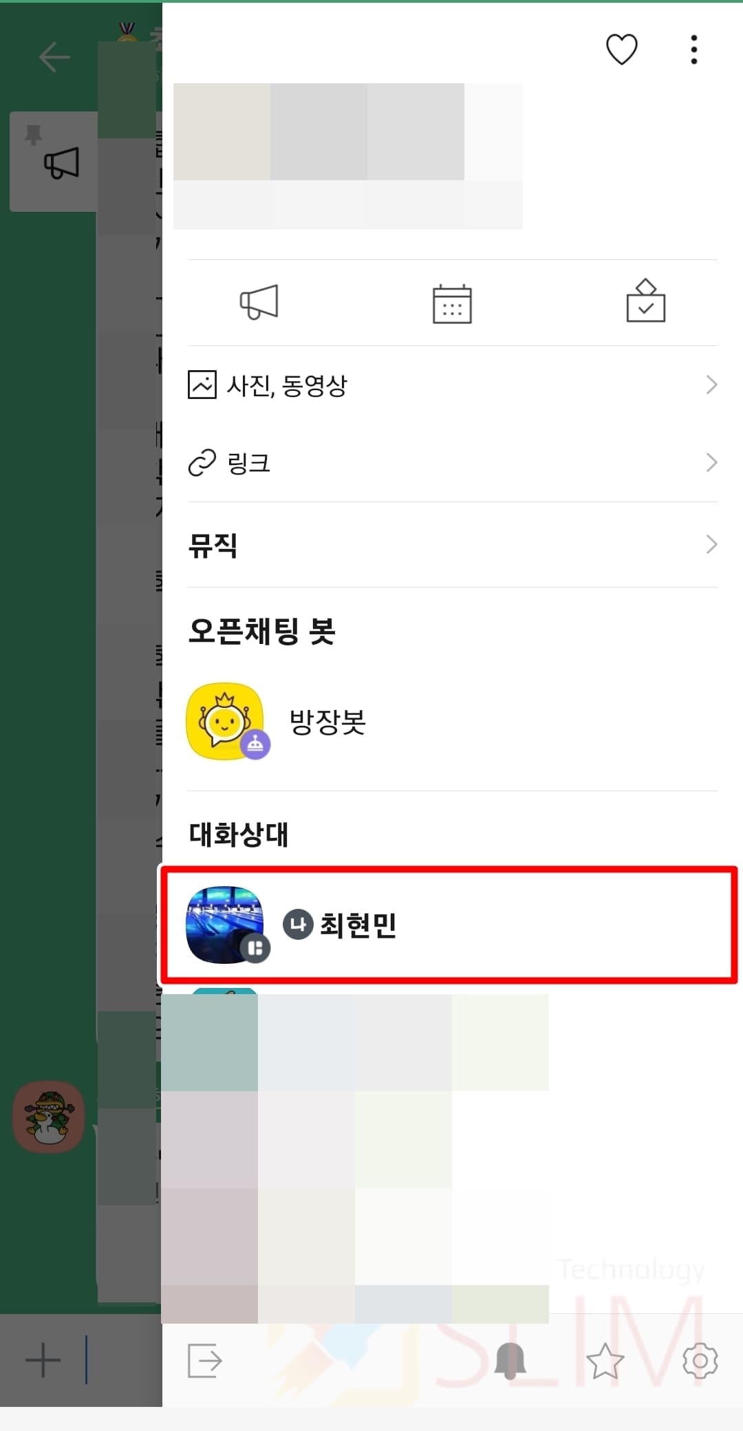 3. 대화상대 목록에 있는 내 프로필을 누릅니다.