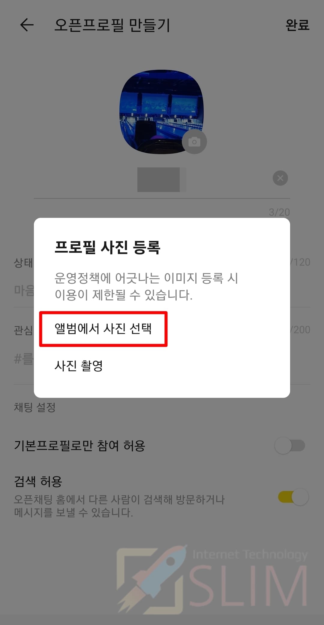 6. 갤러리에서 오픈프로필로 사용할 사진을 선택합니다.