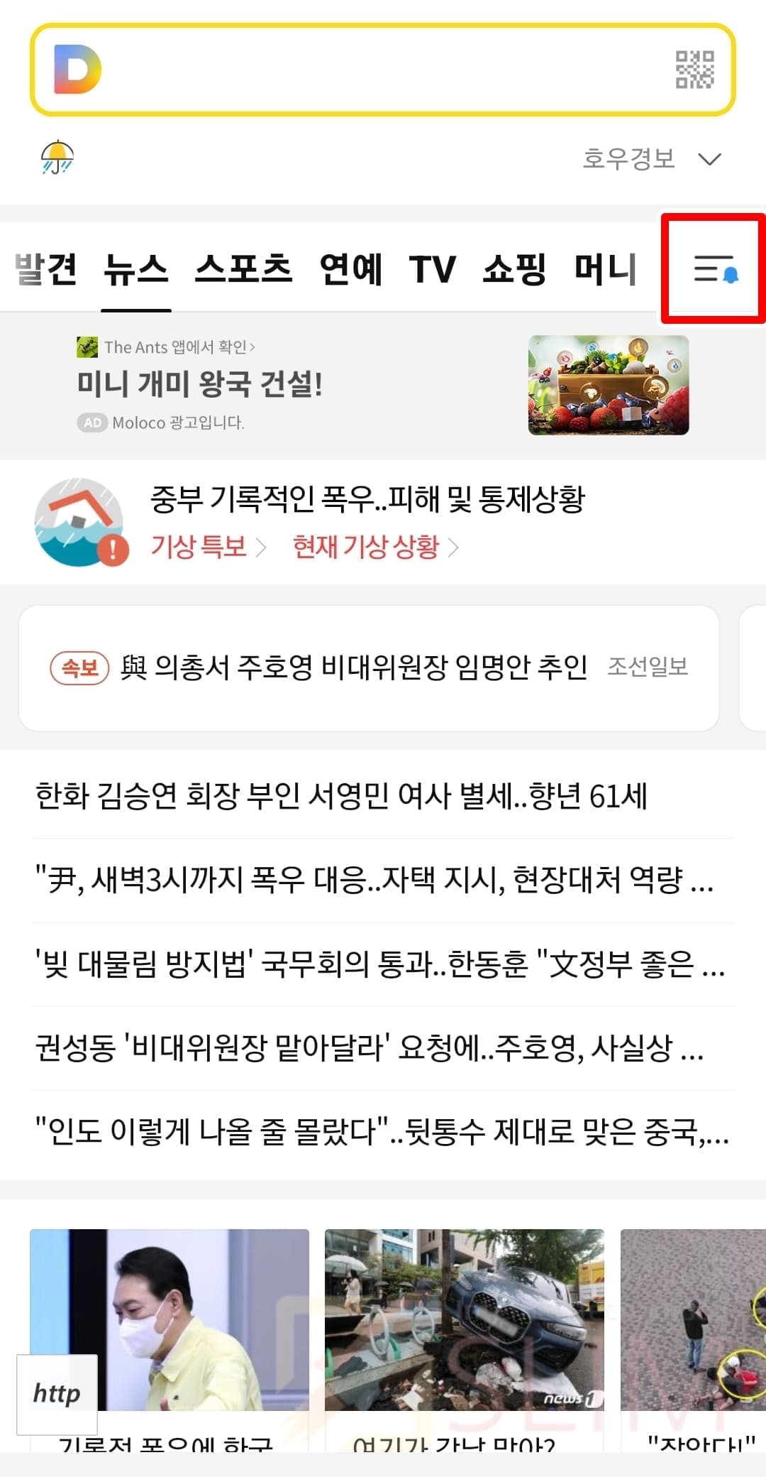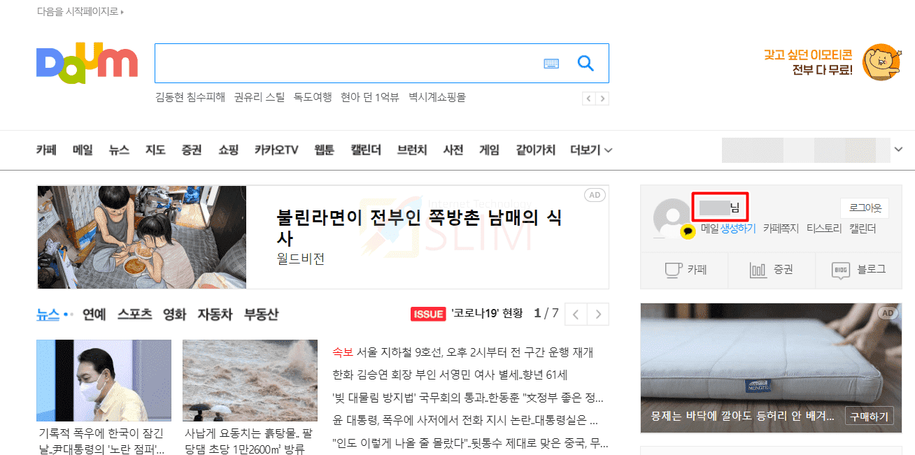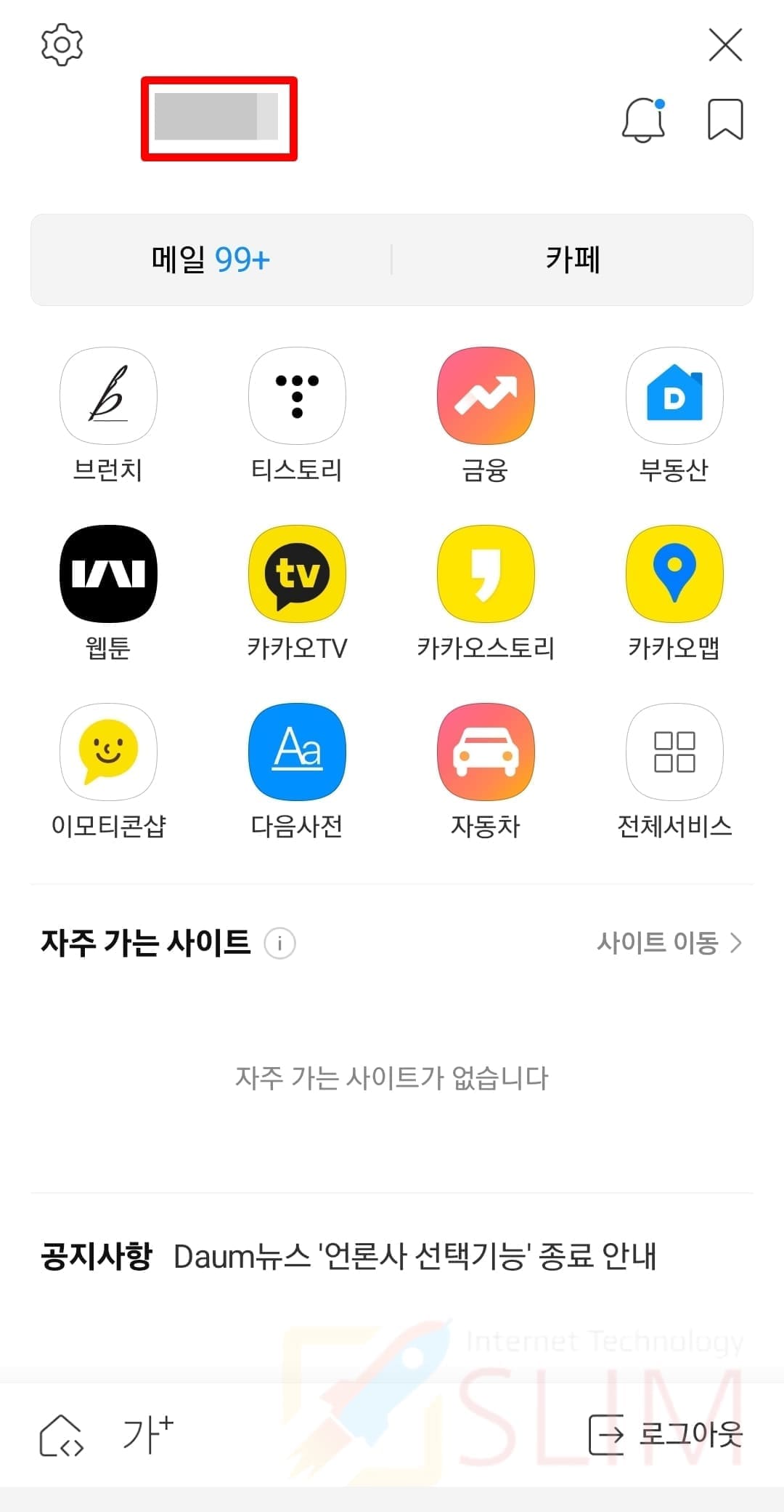 2. 로그인 후 우측 상단 메뉴 더보기 버튼을 클릭합니다.
