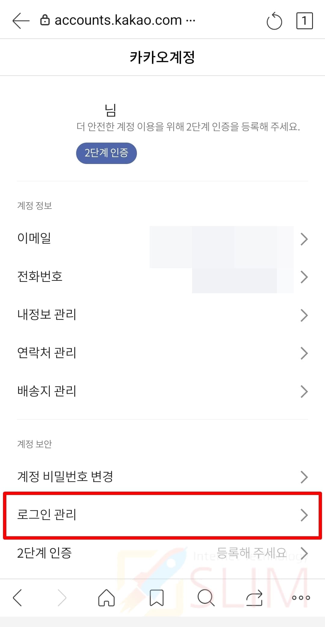 4. 계정 보안 > 로그인 관리를 누릅니다.