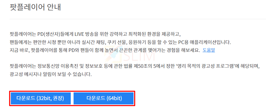 4. 팟플레이어 다운로드 사이트에서 재설치합니다.