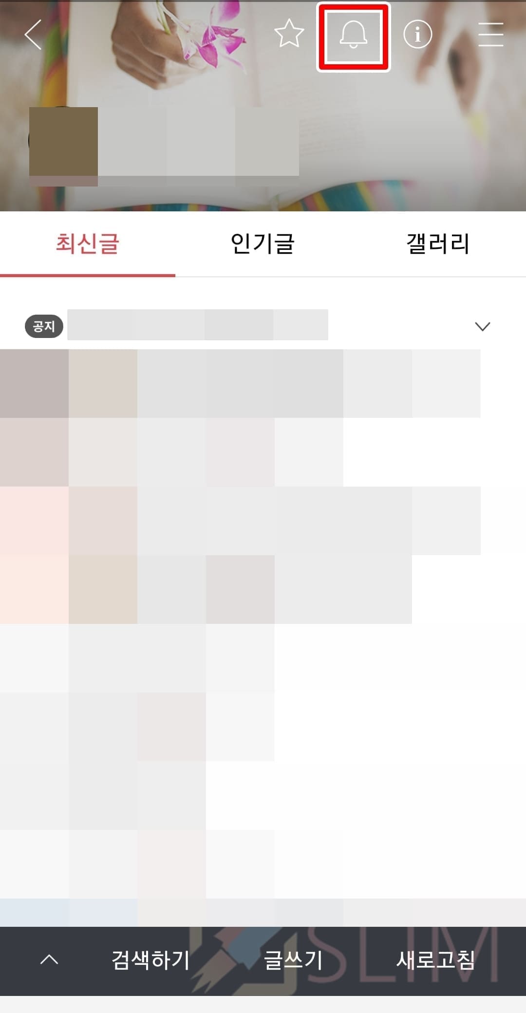 1. 다음 카페 앱의 하단 종모양 버튼을 클릭합니다.