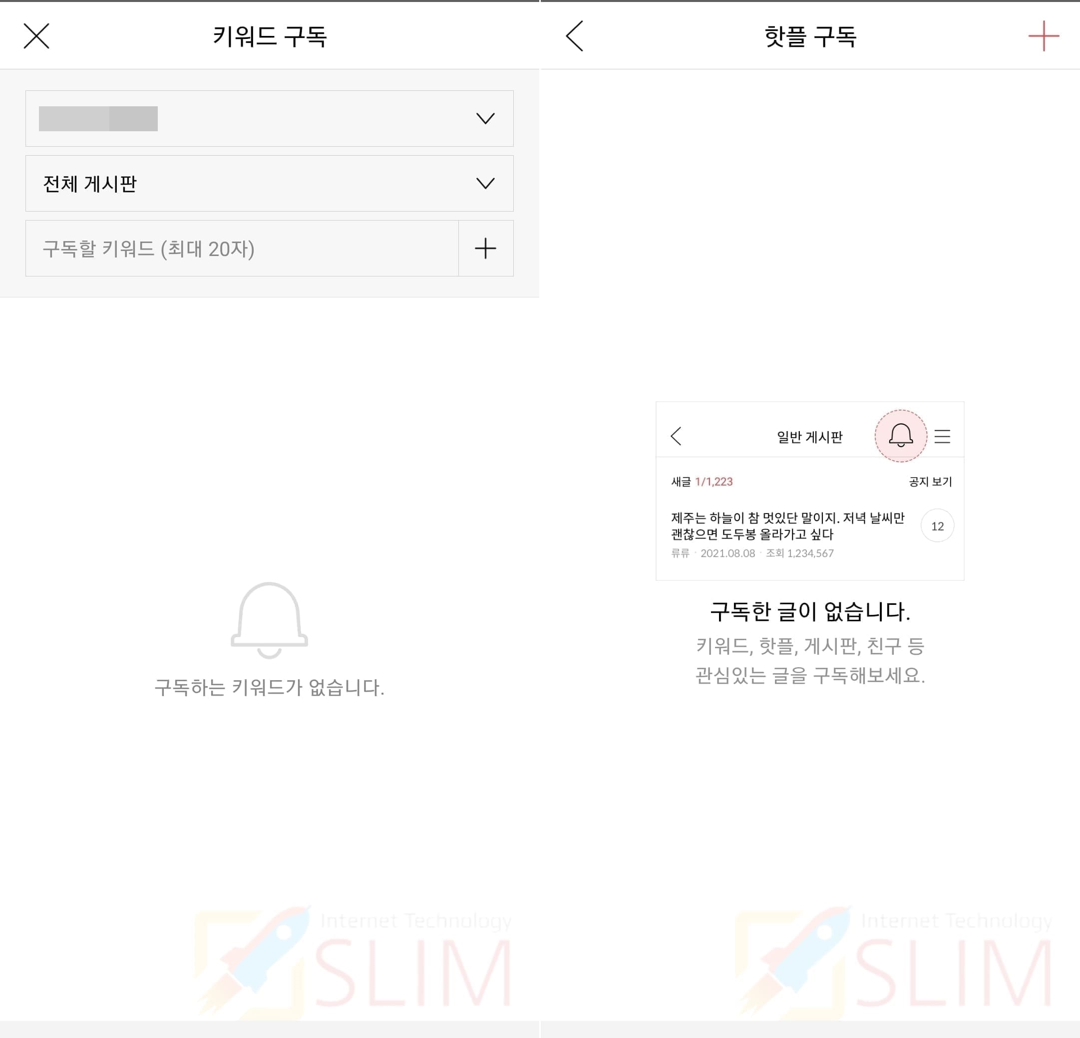 1. 알림과 구독 설정 페이지에서 키워드 구독을 클릭합니다.