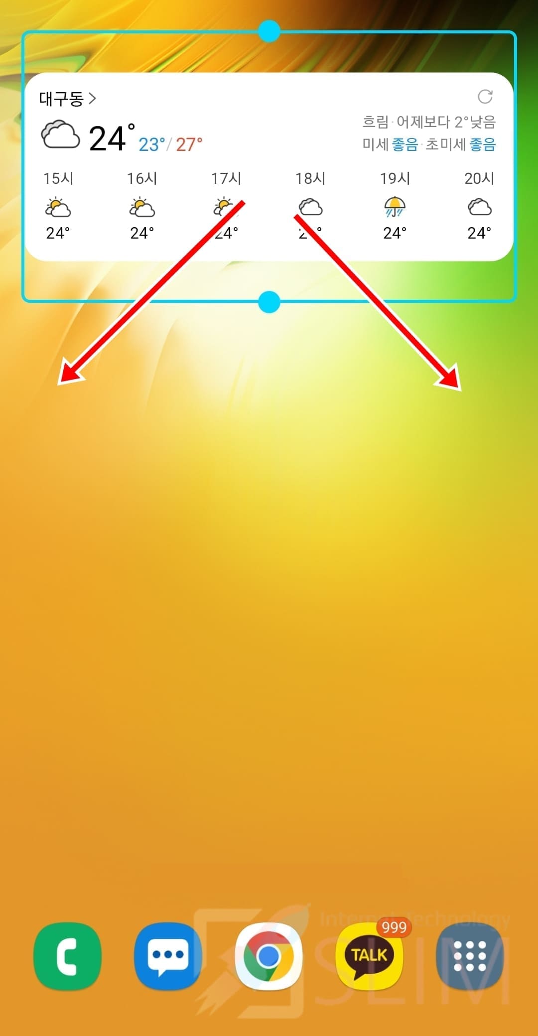 1. 홈화면에 추가된 다음 날씨 위젯을 2초간 길게 누릅니다.