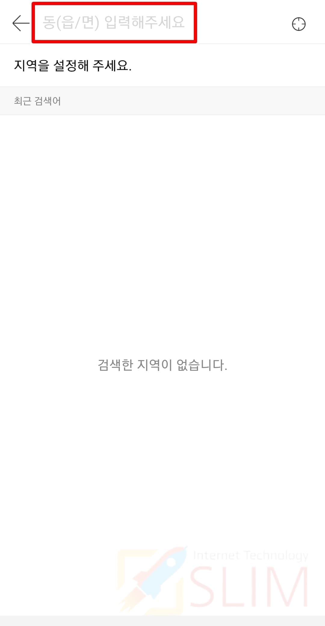 2. 변경하고 싶은 지역을 검색해서 목록에서 선택합니다.