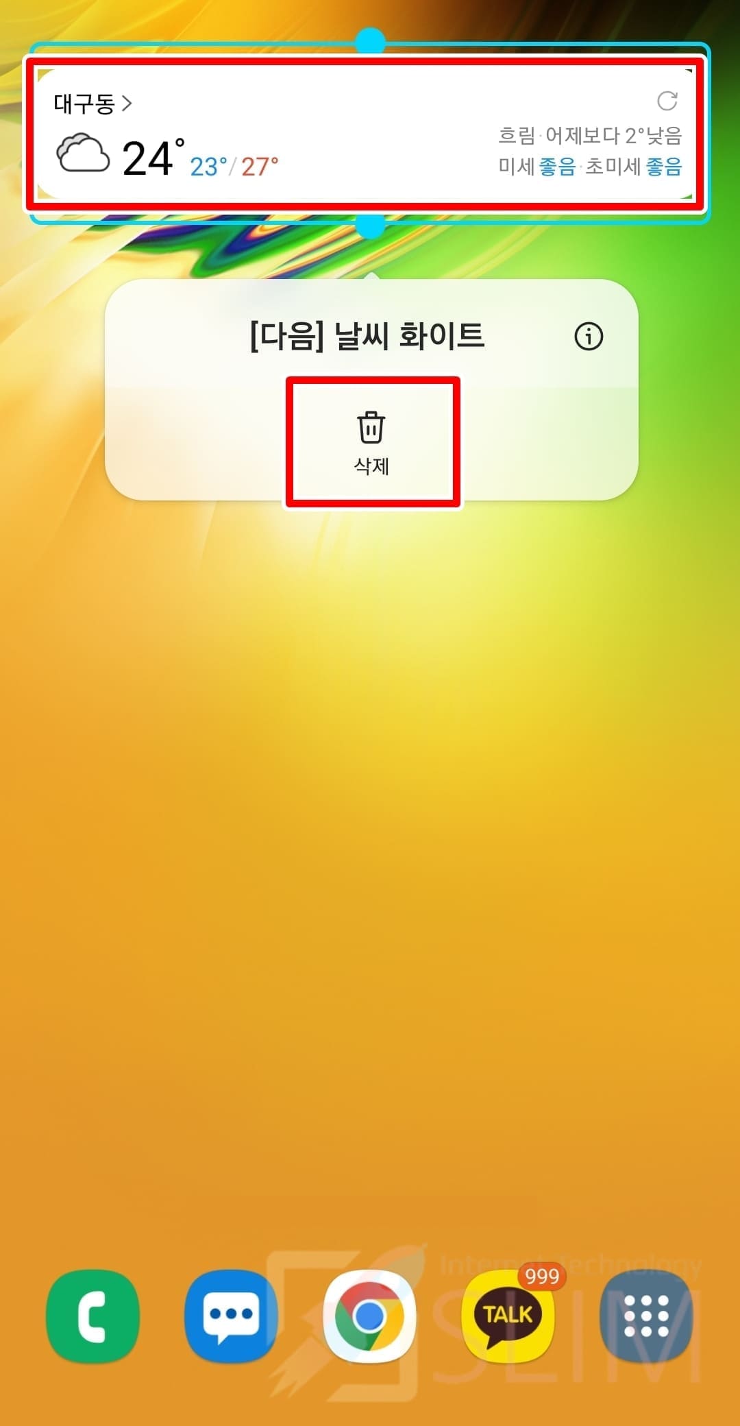 만약 다음 날씨 위젯을 지우고 싶으시다면 위젯을 2초간 길게 누르신 후 삭제 버튼을 눌러주시면 됩니다.