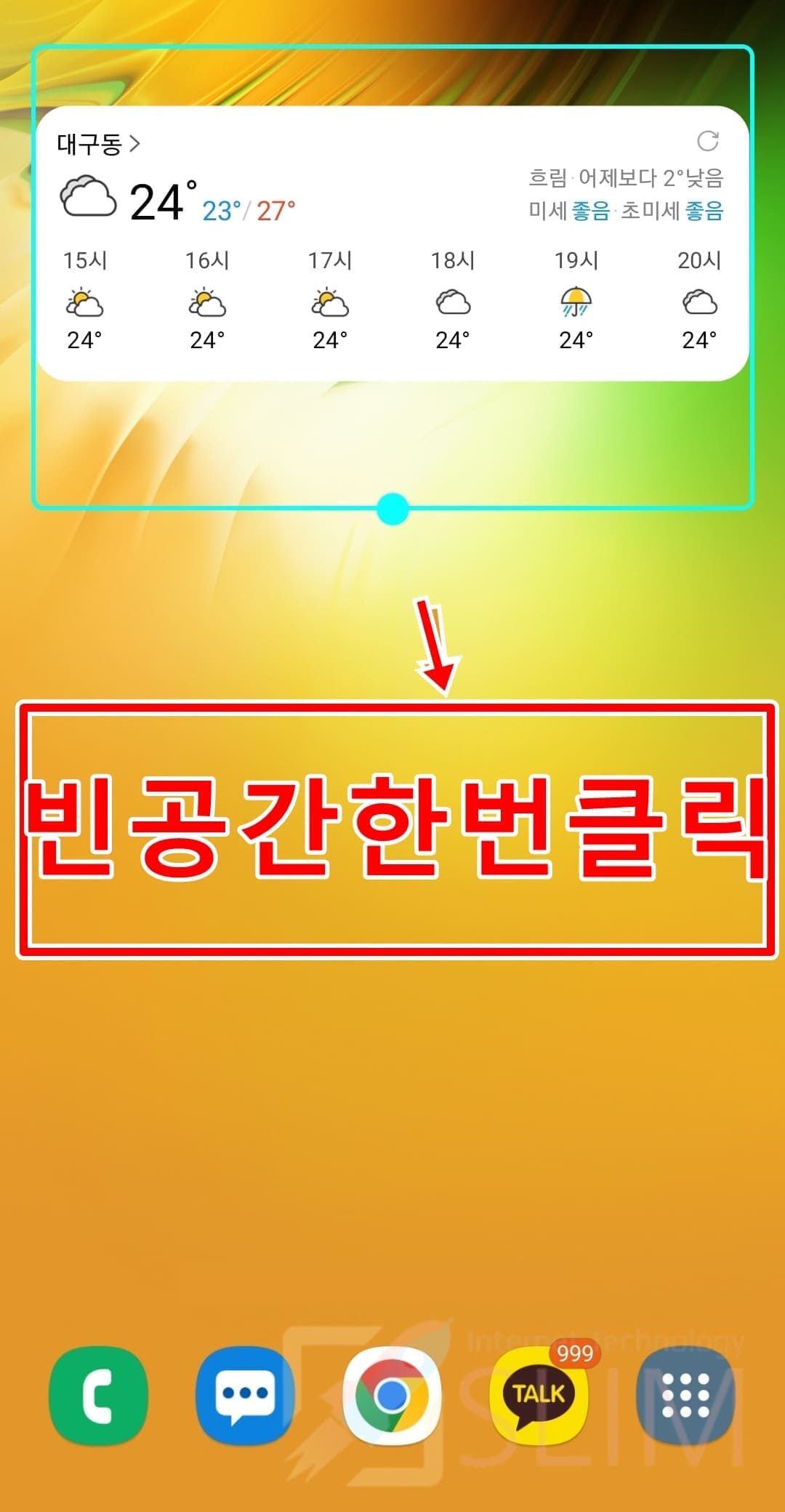 3. 다음 날씨 위젯의 크기가 확대되면 빈공간을 한번 누릅니다.