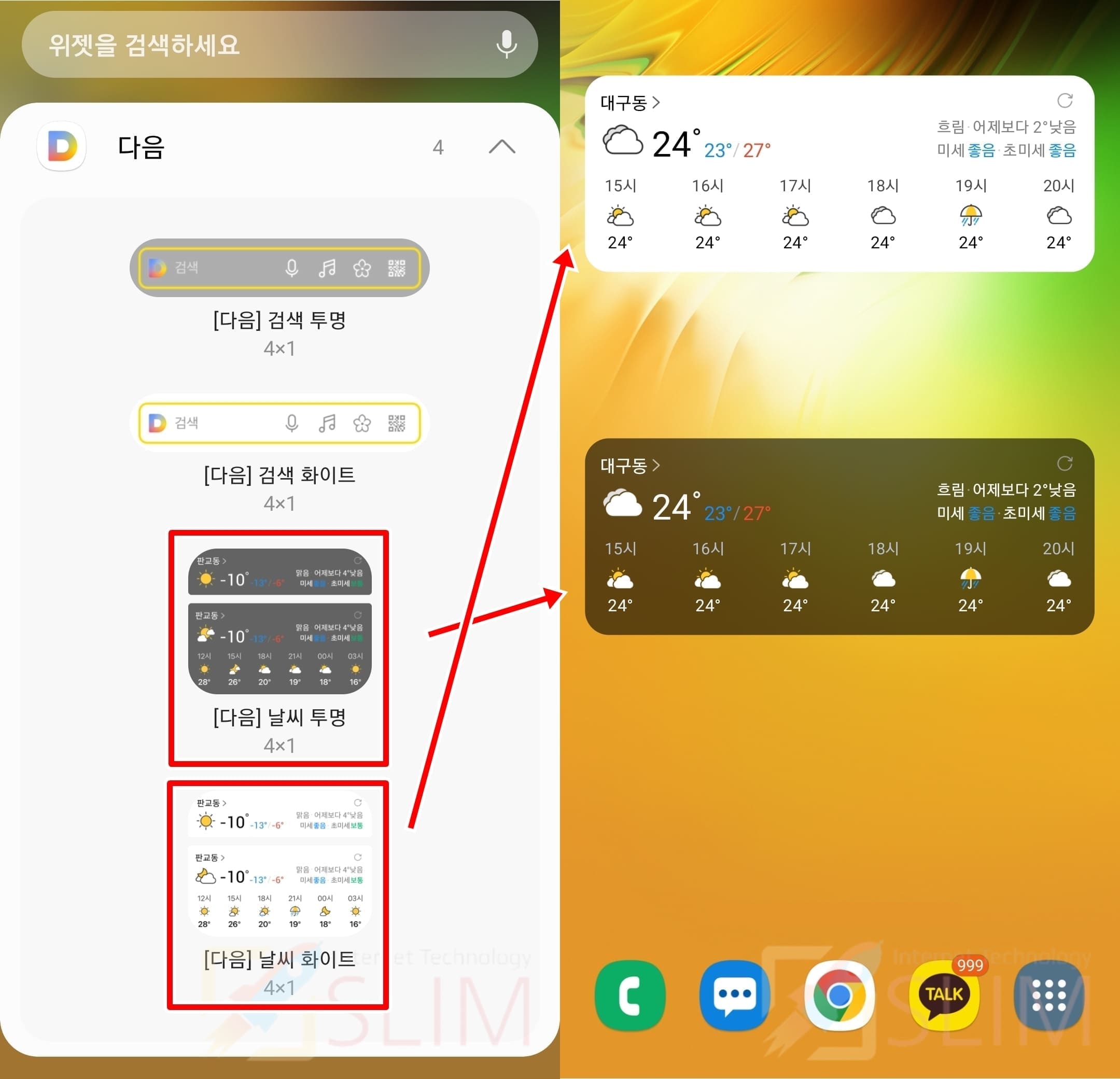 2. 다음 날씨 위젯 크기를 키워서 시간별 날씨 표시하기