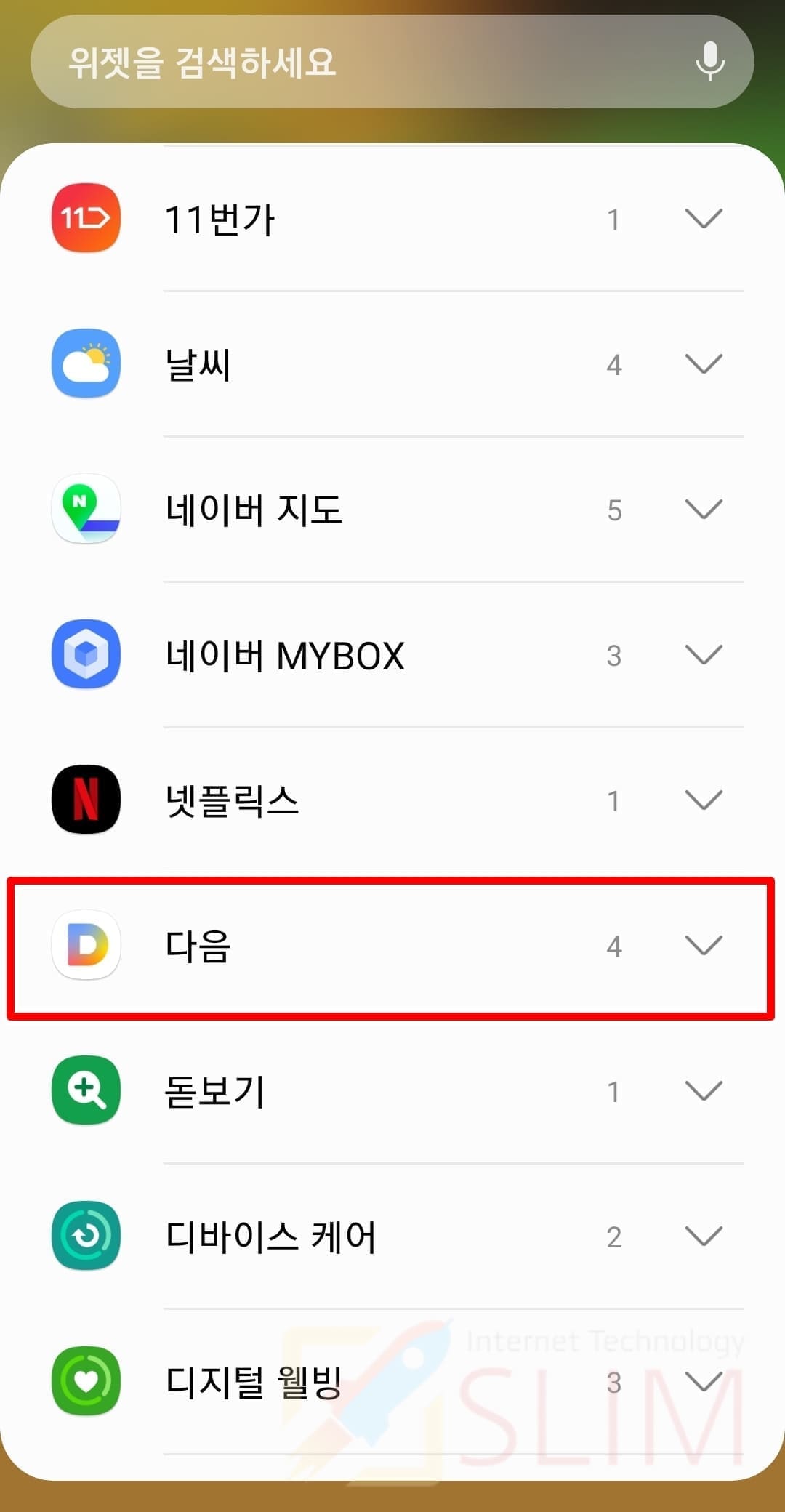 3. 다음 날씨 위젯 지역이 변경됩니다.