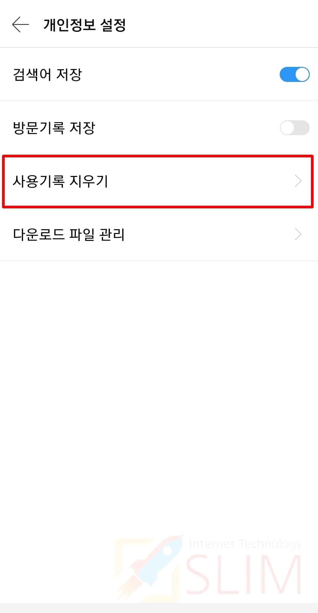 5. 사용기록 지우기를 누릅니다.