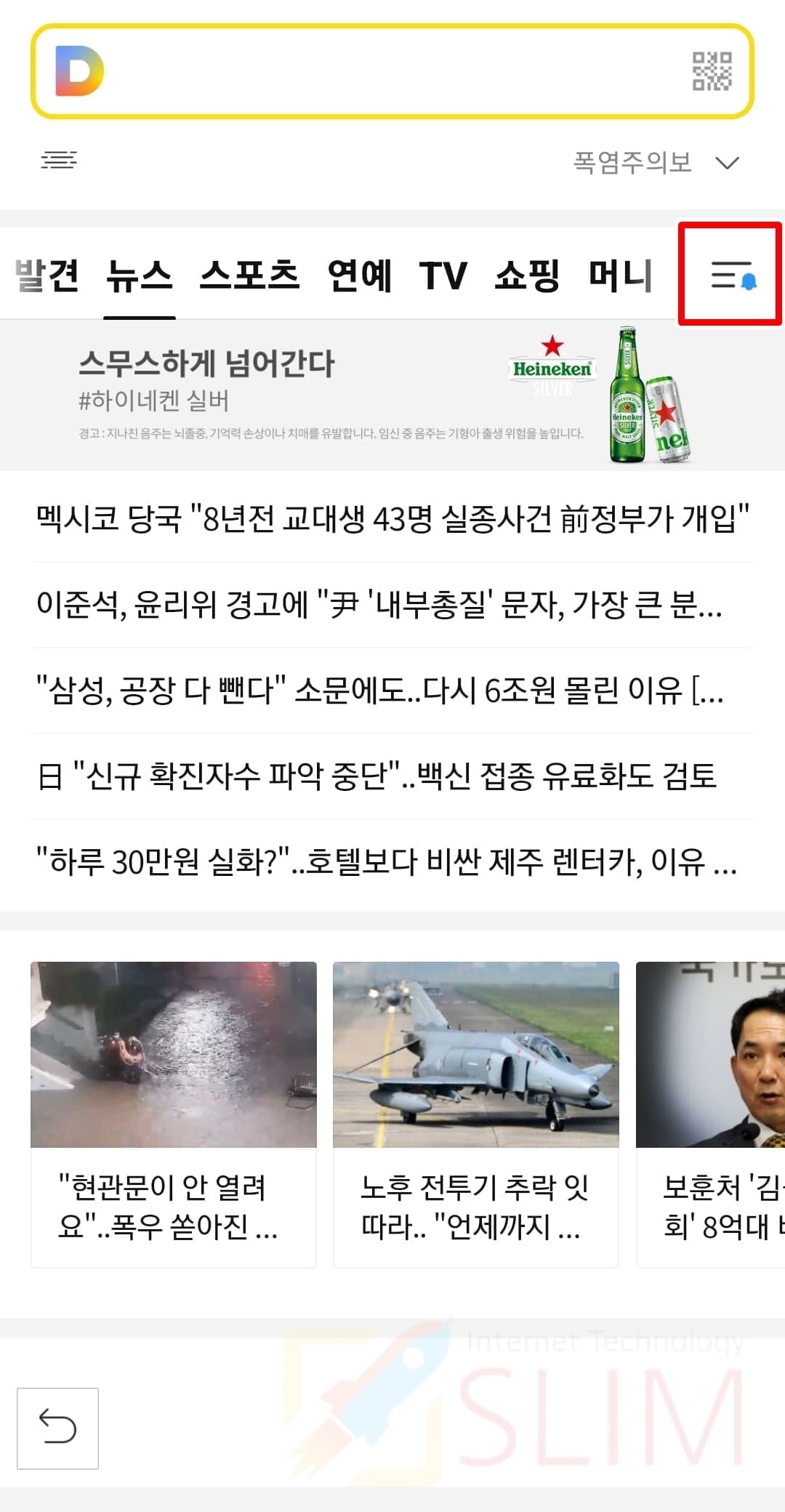 2. 메뉴 우측 더보기 버튼을 클릭합니다.