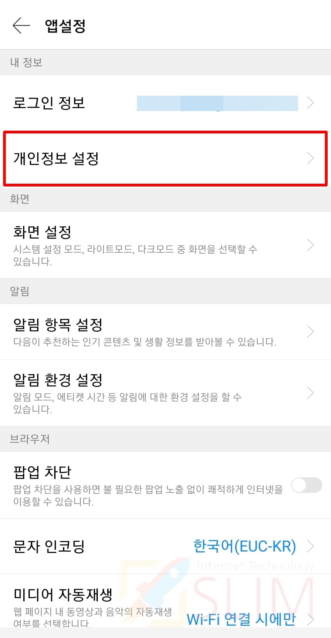 4. 개인정보 설정을 클릭합니다.