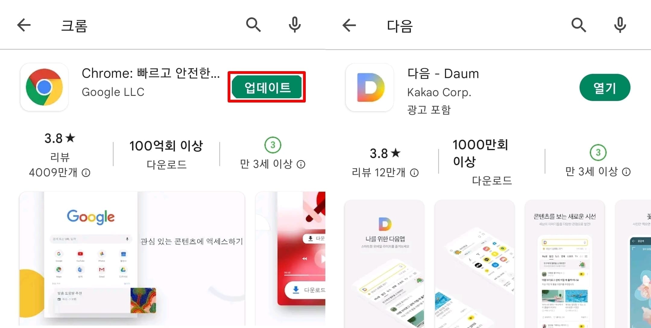 4. 사용중인 인터넷 앱 및 다음 앱 최신 업데이트하기