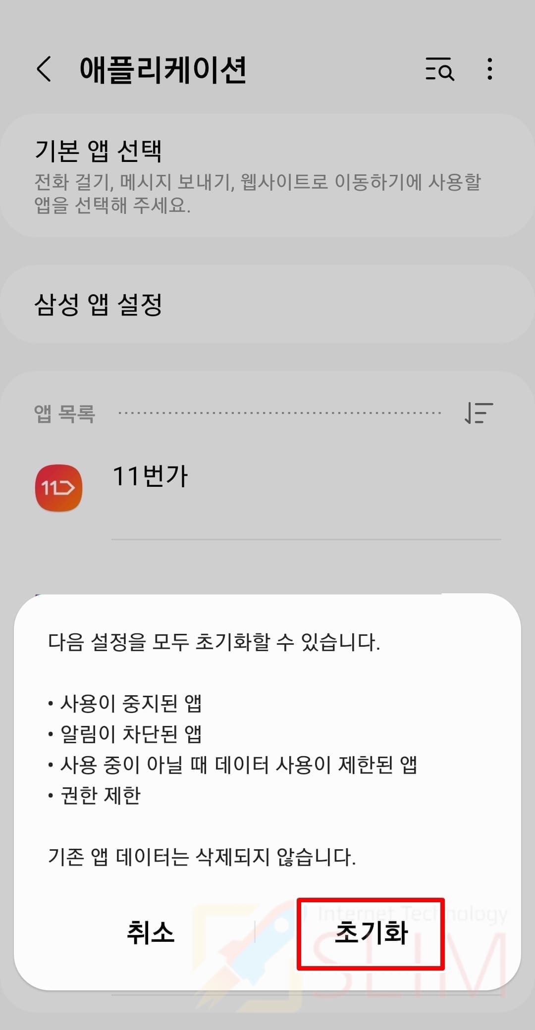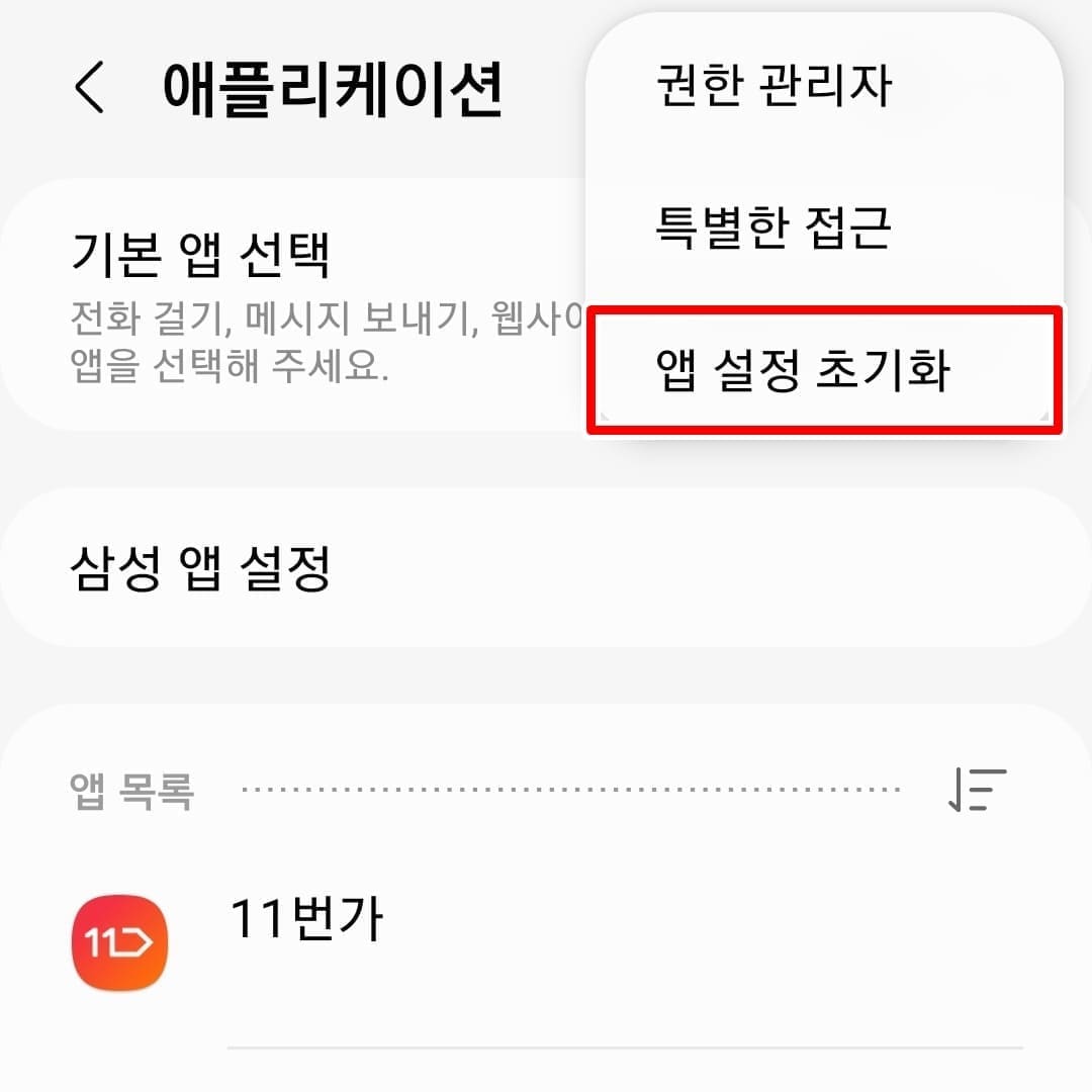 4. 앱 설정 초기화를 클릭합니다.