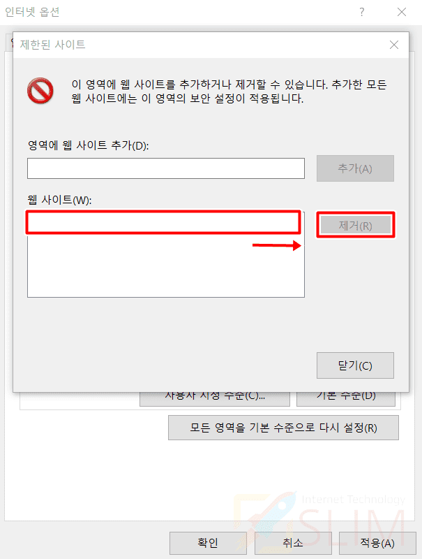 7. PC 인터넷 익스플로러에서 제한된 다음 사이트 해제하기