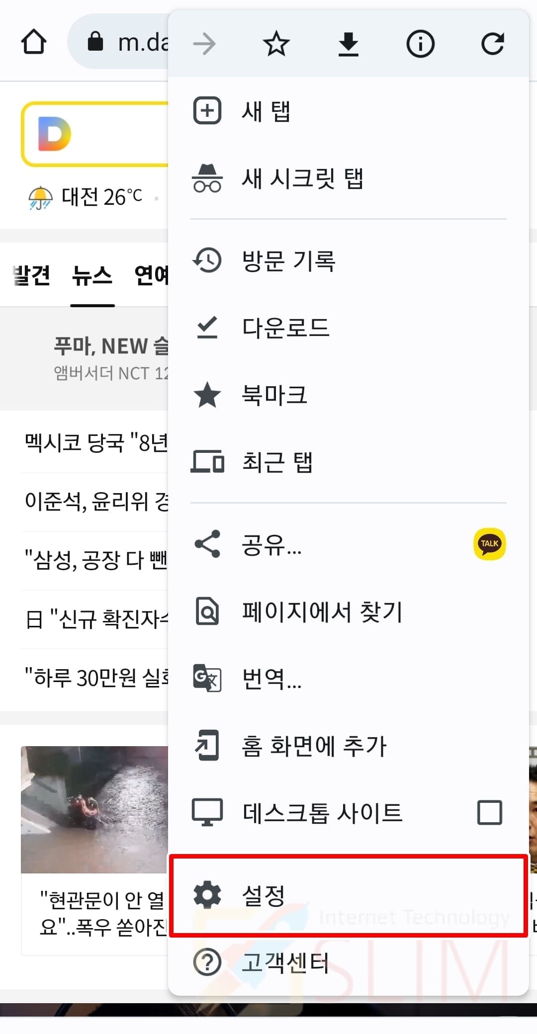 3. 설정을 누릅니다.
