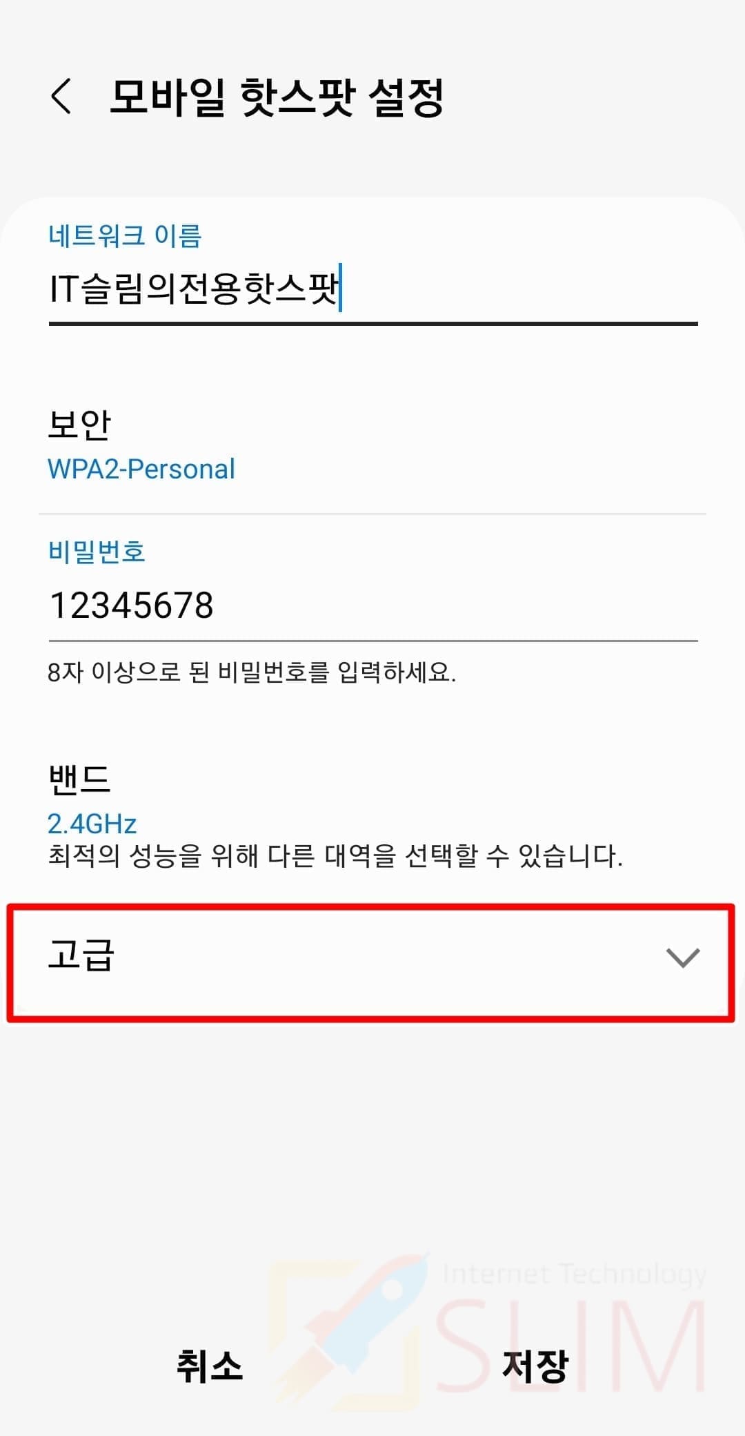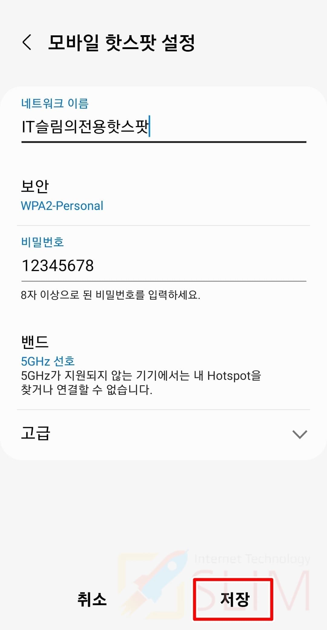 4. 저장을 누르고 핫스팟 연결을 시도합니다.