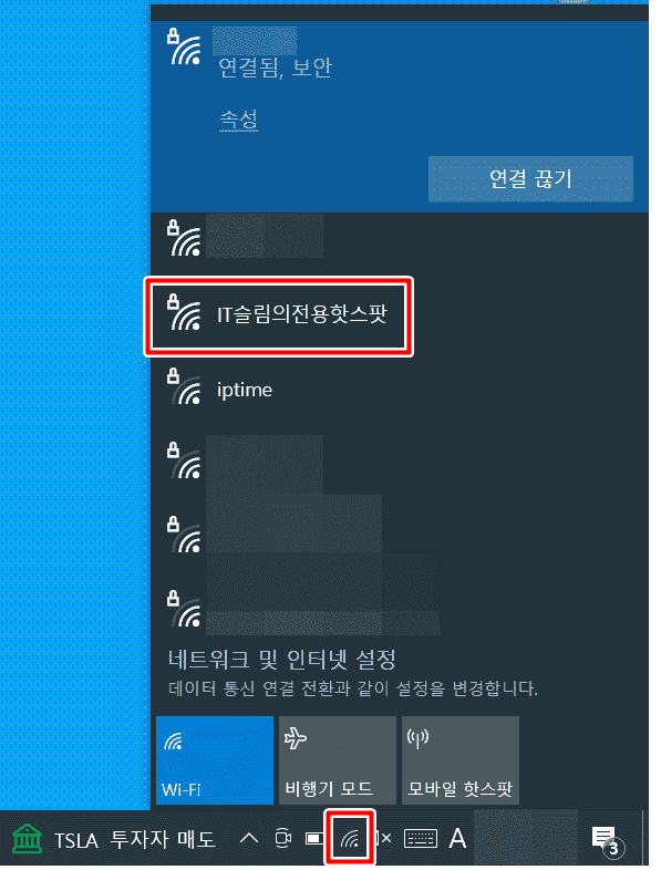 10. 모바일 핫스팟 이름과 비밀번호 확인한 후 연결하기