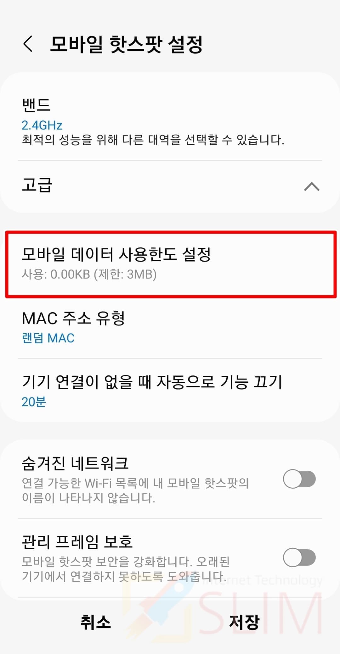 만약 핫스팟 연결은 되는데 인터넷 안됨 오류가 발생하신다면 높은 확률로 모바일 데이터 사용한도가 설정되어 있을 수 있습니다. 모바일 데이터 사용한도 기능이란 모바일 데이터의 많은 소모량을 막기 위해서 지정된 용량만큼만 핫스팟 인터넷 연결이 가능하게 제한하는 기능을 말합니다.