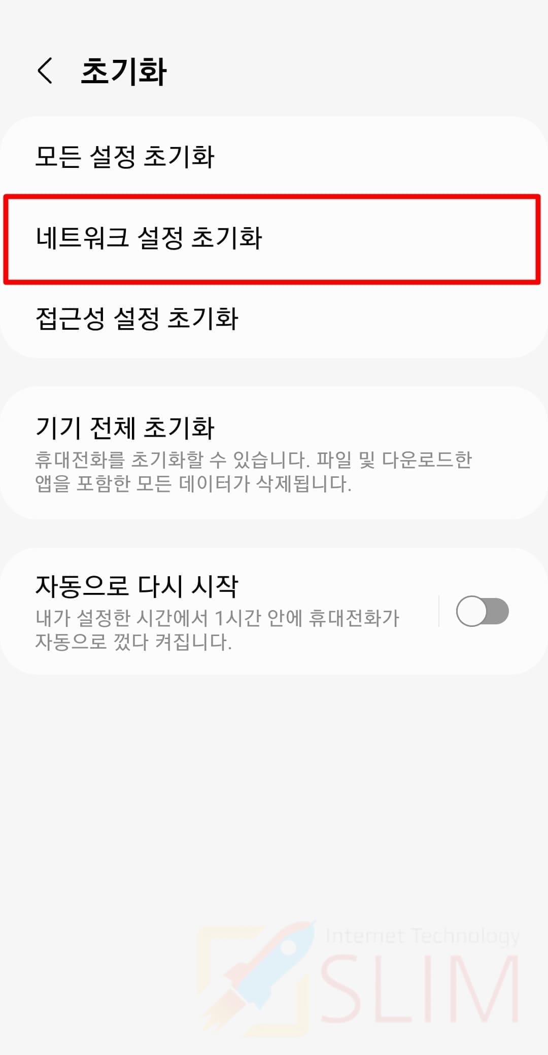 스마트폰 모바일 핫스팟 기능을 이것저것 만져보다가 연결 안됨 및 끊김 문제가 발생했다면, 가장 깔끔하게 해결할 수 있는 방법이 있습니다. 바로 스마트폰 네트워크 설정을 초기화해주는 것입니다. 초기화시 모바일 데이터, 블루투스, 와이파이 관련 기능이 모두 초기화되니 참고하시길 바랍니다.