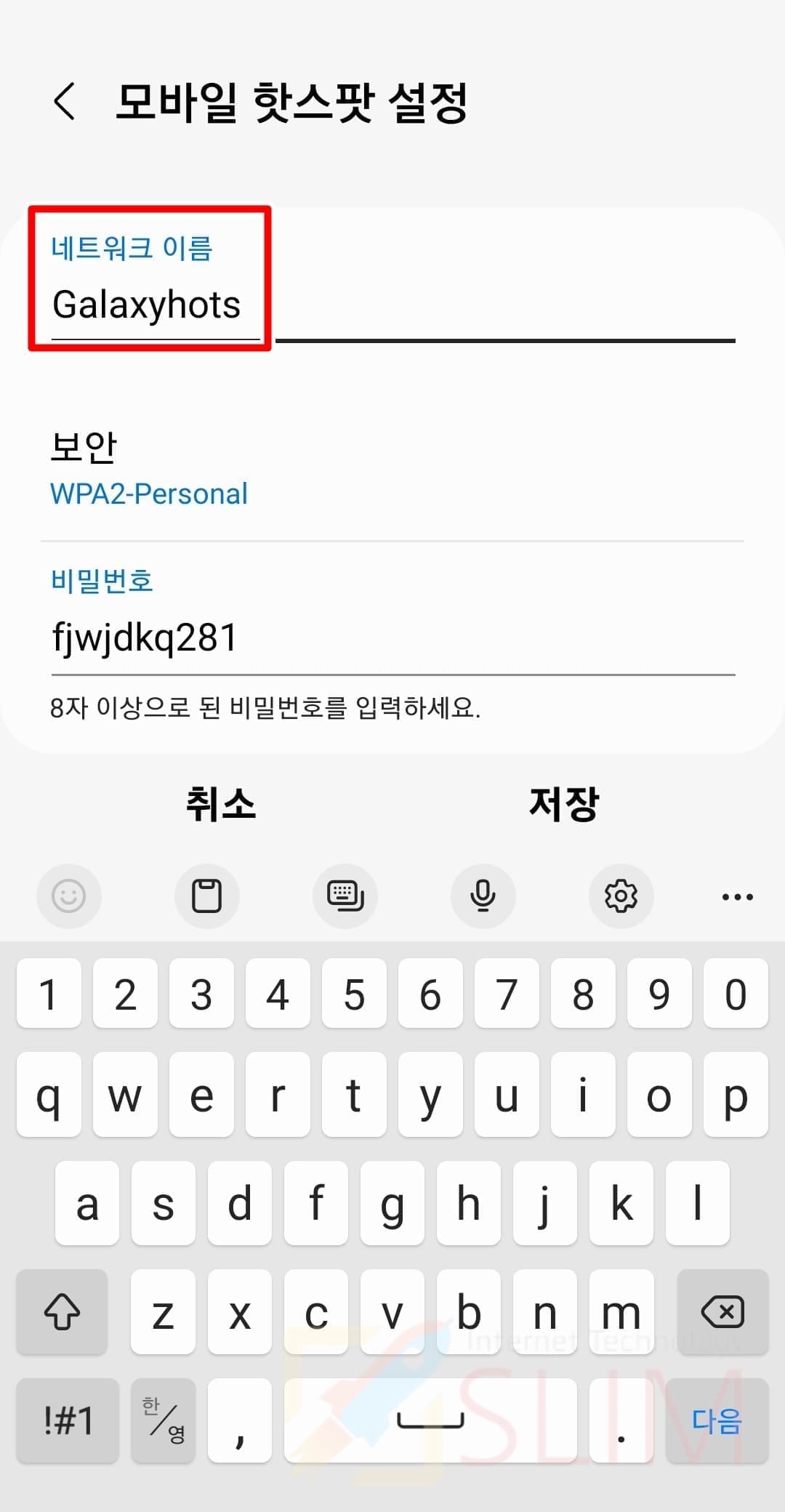 6. 핫스팟 이름 및 비밀번호를 재설정하여 연결 후 사용하시면 됩니다.