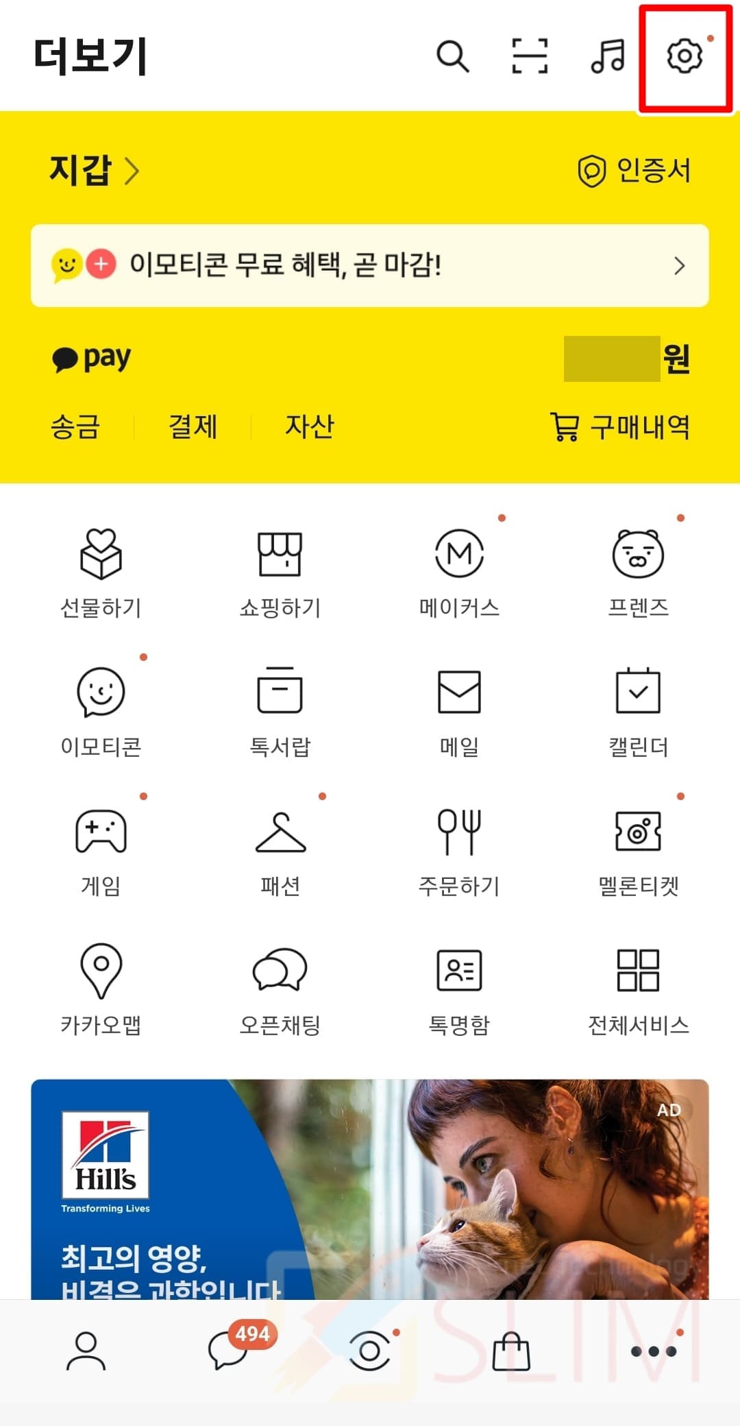 3. 우측 상단 톱니바퀴 설정 버튼을 누릅니다.
