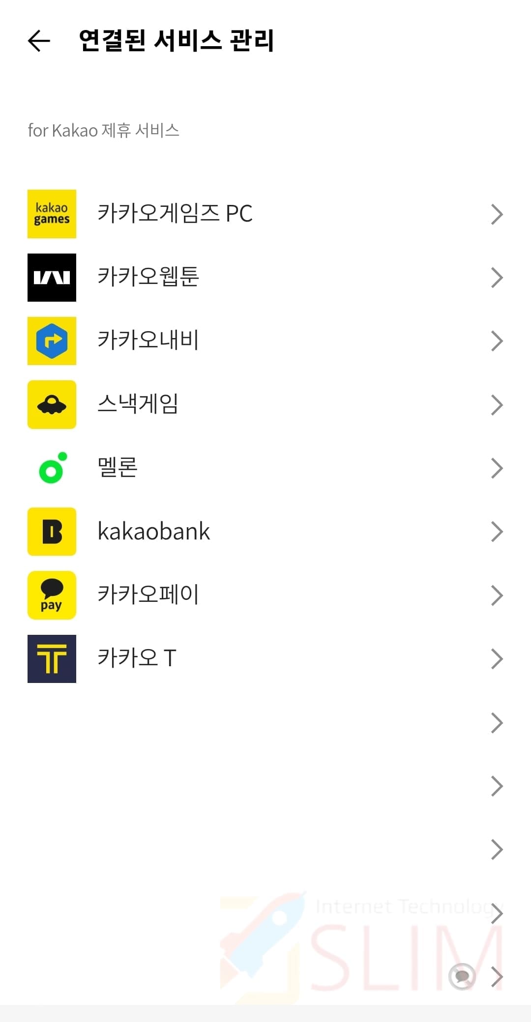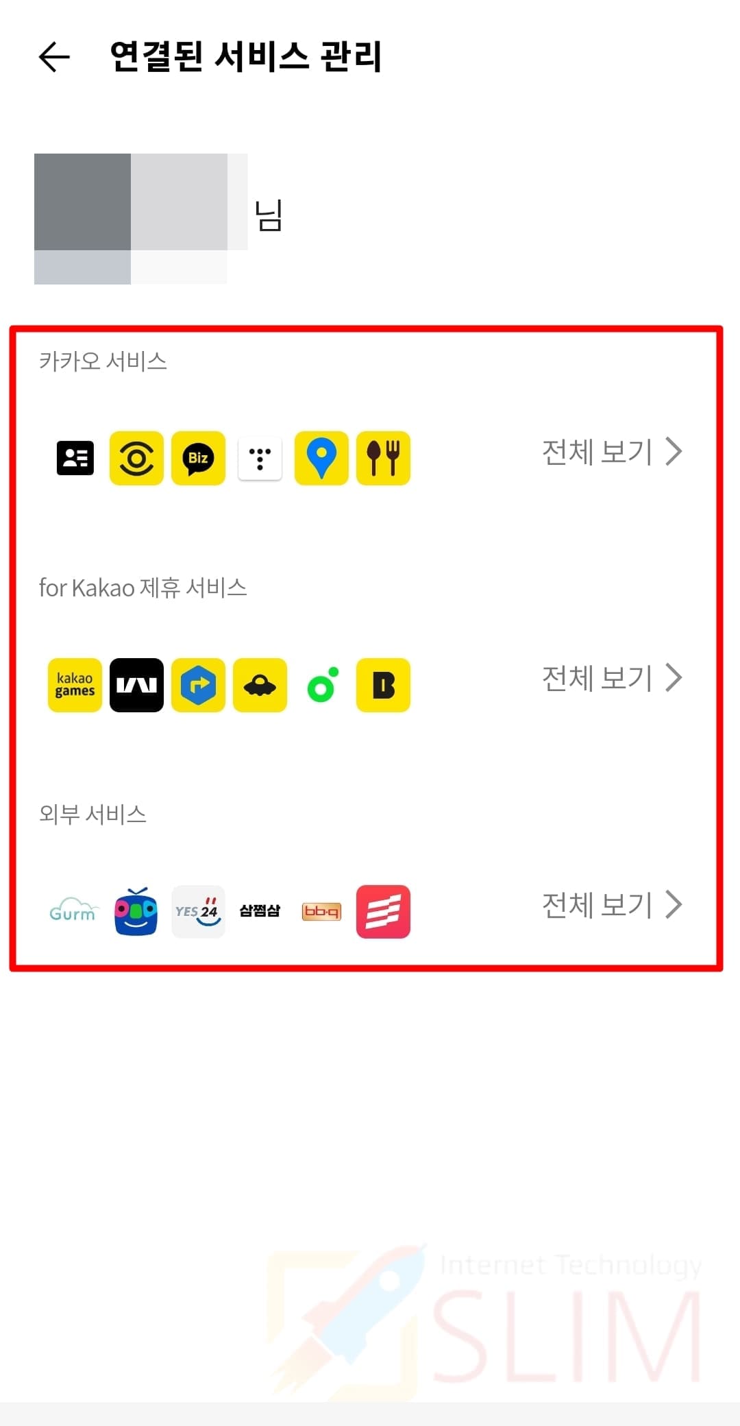 8. 카톡 계정과 연결된 모든 서비스를 확인합니다.