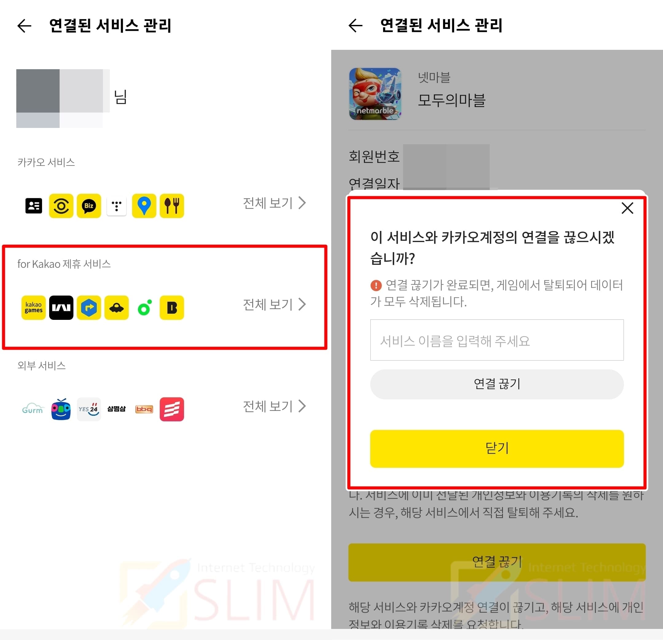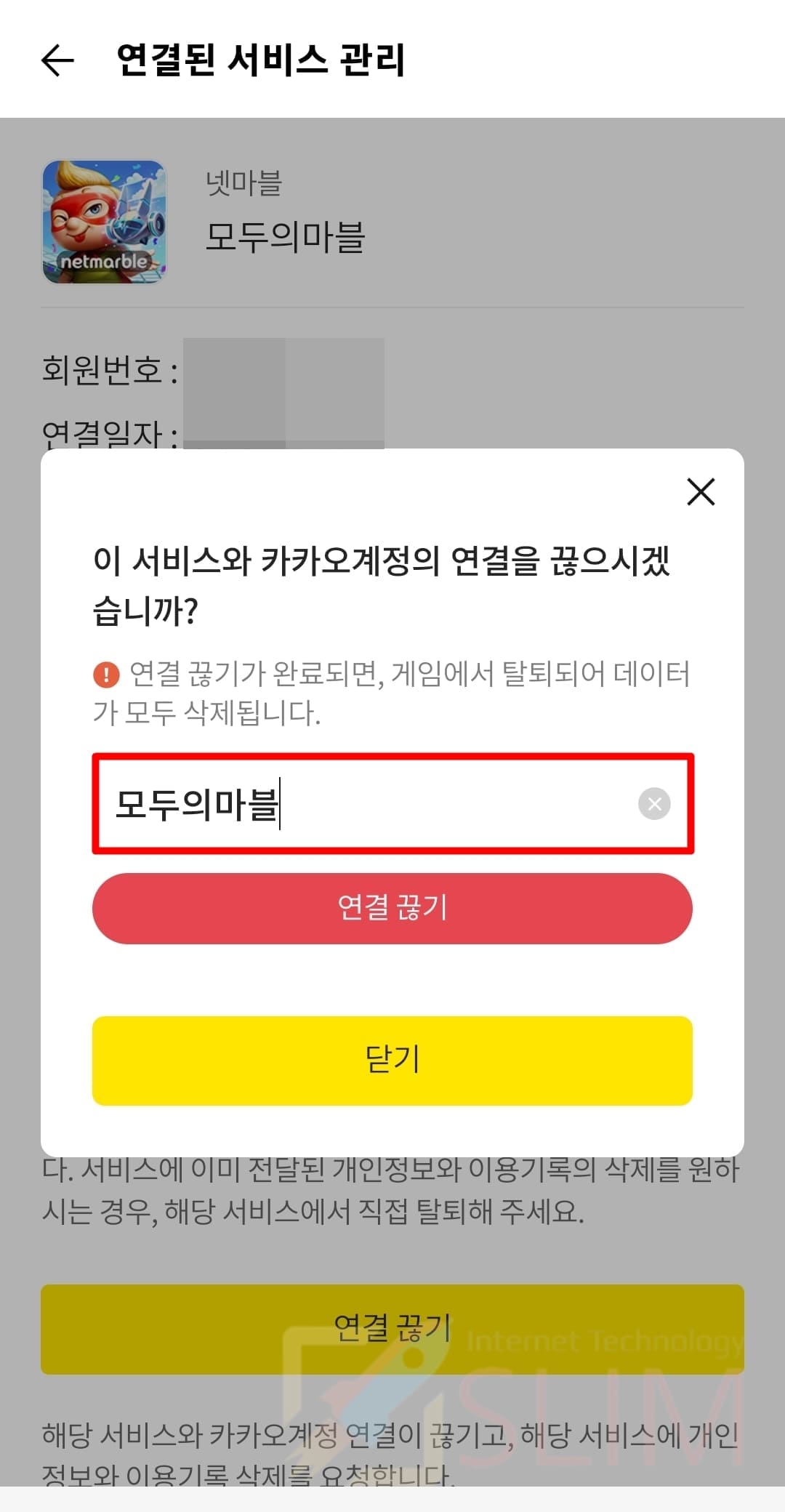 2. 빈칸에 연결을 끊고 싶은 서비스 이름을 기입합니다.