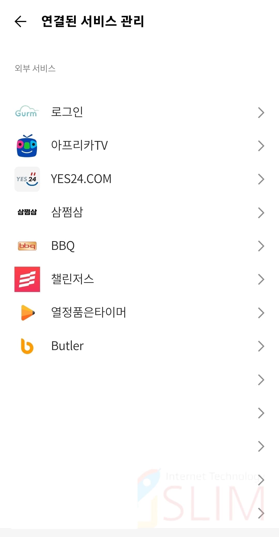 7. 연결된 서비스 관리를 누릅니다.