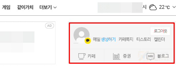 이제 다음을 이용하다가 인터넷을 닫거나, 컴퓨터를 재부팅한 후 다음 사이트를 켜봐도 계속 카카오 계정이 자동 로그인되어 있는 것을 볼 수 있습니다.