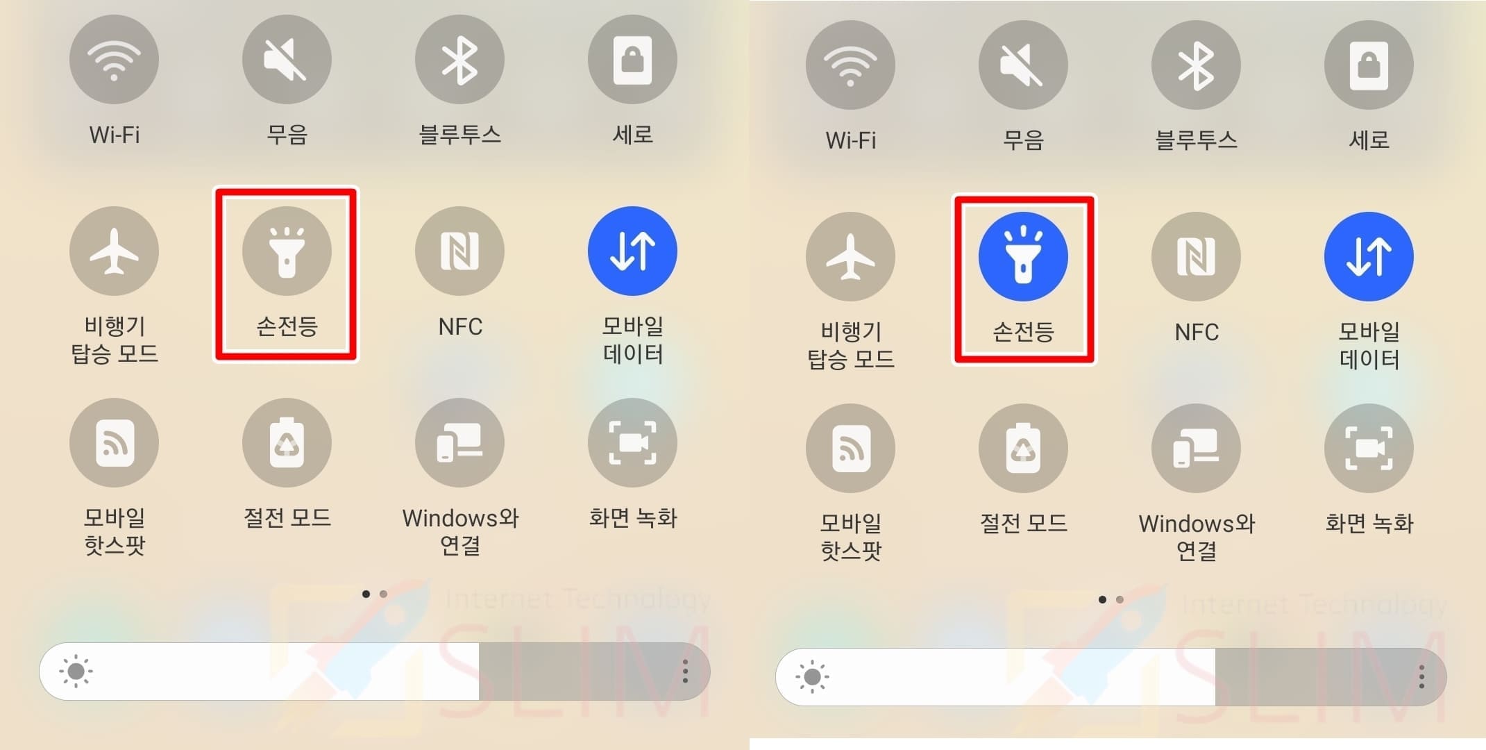 2. 손전등 아이콘을 찾아서 클릭합니다.