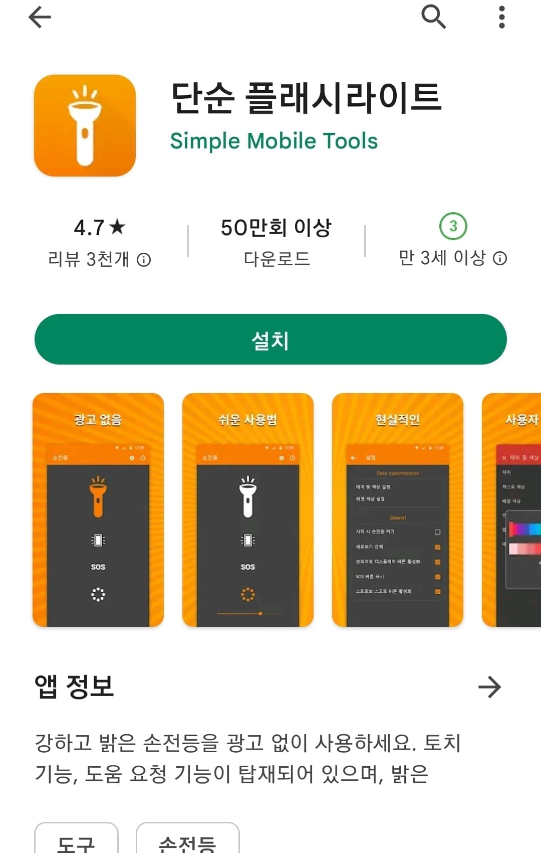 마지막으로 갤럭시 플래시 켜기 및 끄기 기능을 사용할 때 시간제한이나 설정하고 싶은 개인적인 기능이 있다면 별도의 플래시라이트 앱을 사용하는 것을 추천합니다. 플래시 앱들의 경우 화면의 단색으로 플래시를 만들거나 타이머 기능 등이 있어서 편리하기 때문입니다.