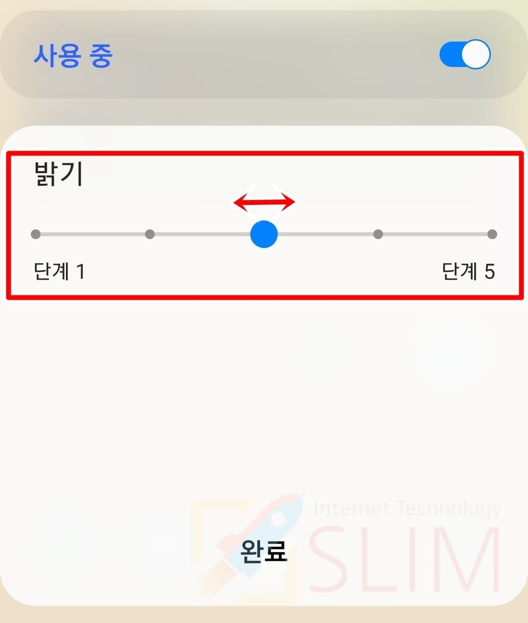 3. 밝기 단계를 조절한 후 완료를 클릭합니다.