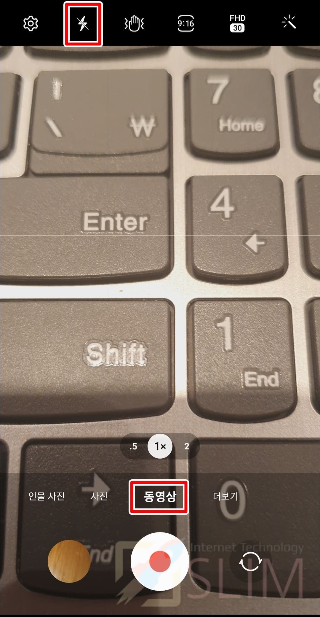 6. 플래시가 항상 켜진 상태로 동영상을 촬영합니다.