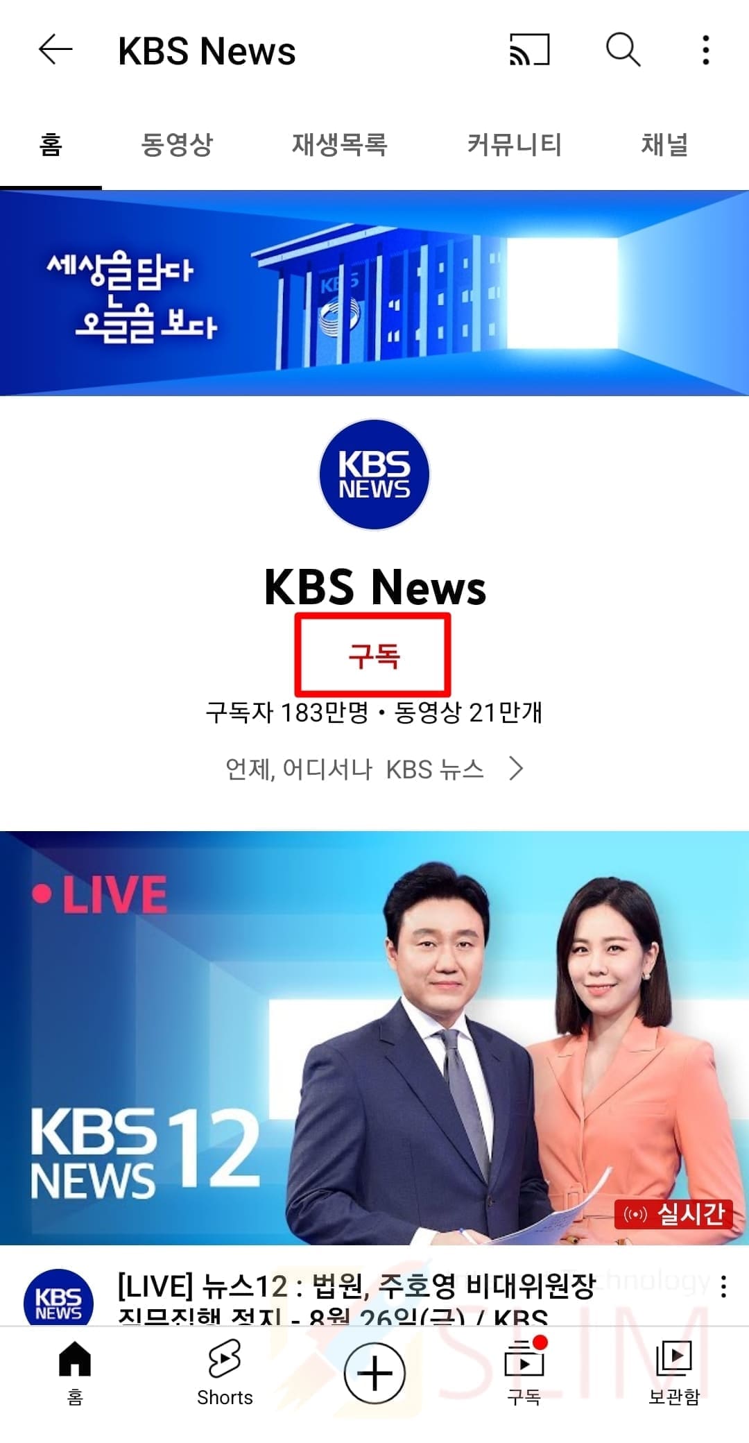 2. 알림을 설정하고 싶은 채널의 홈으로 이동합니다.