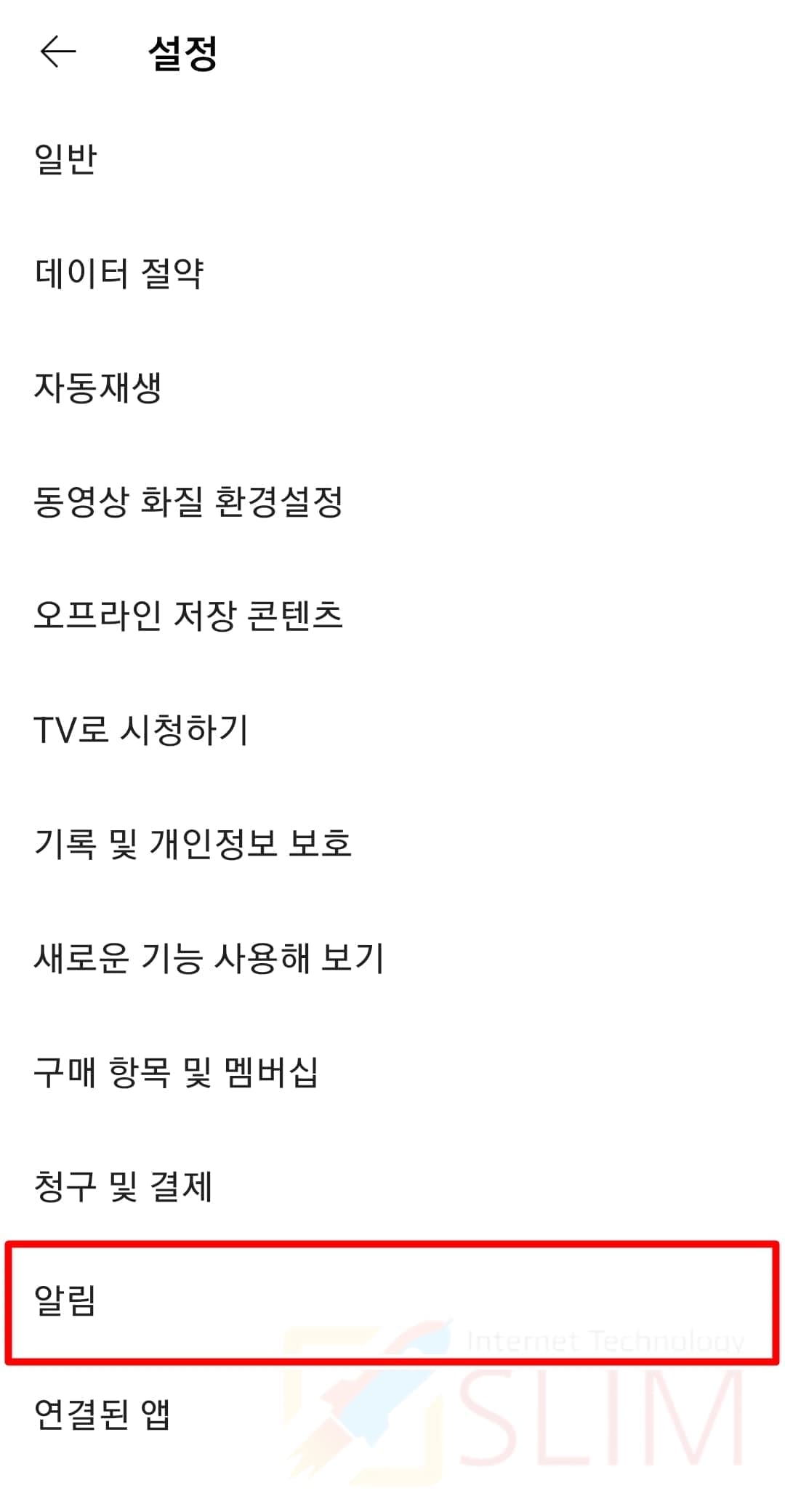 3. 유튜브 앱 알림을 설정합니다.