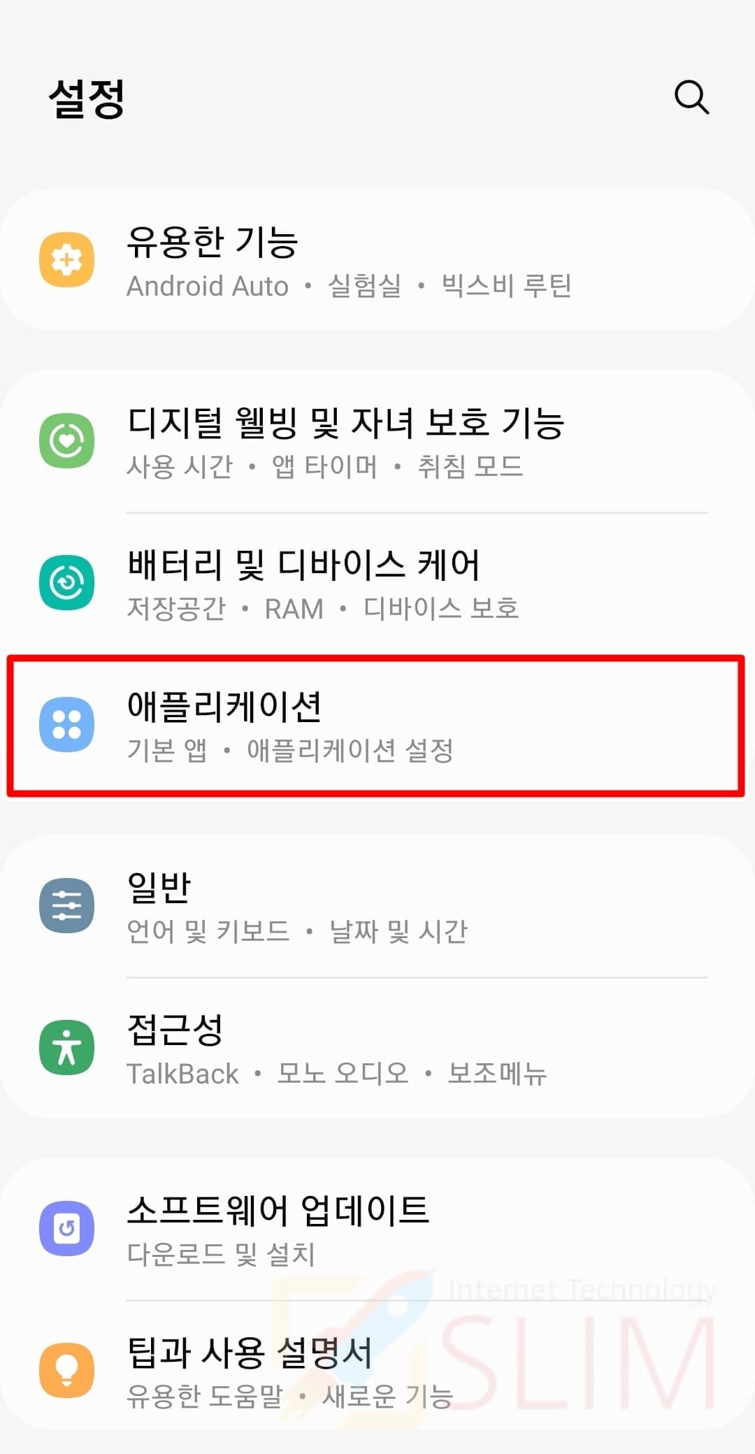 2. 애플리케이션을 누릅니다.