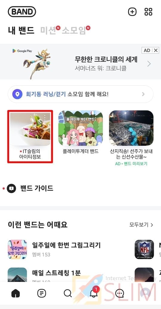1. 스마트폰에서 BAND 앱을 실행합니다.