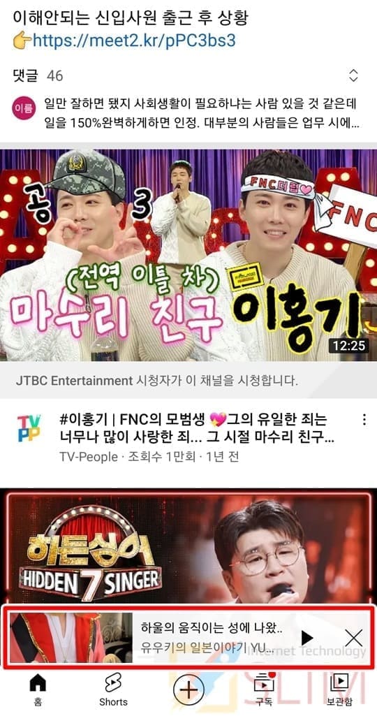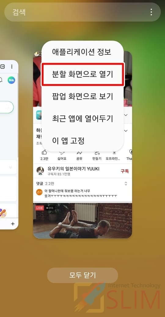 6. 유튜브를 분할화면 모드로 사용합니다.